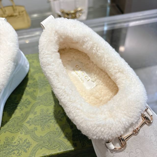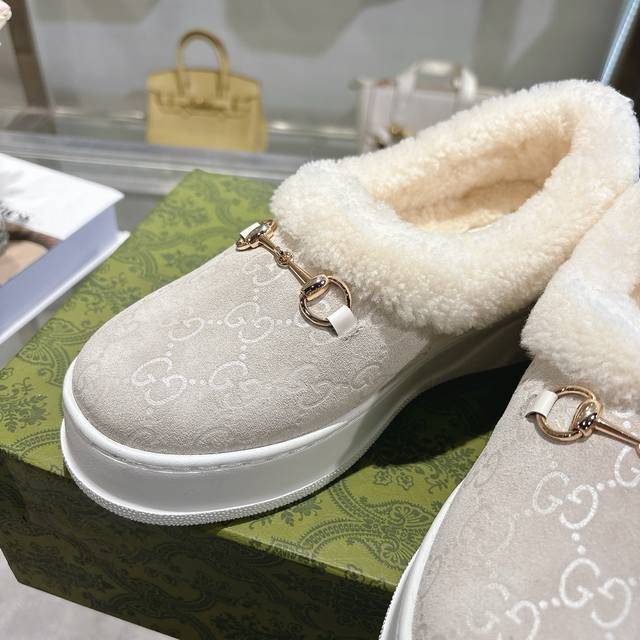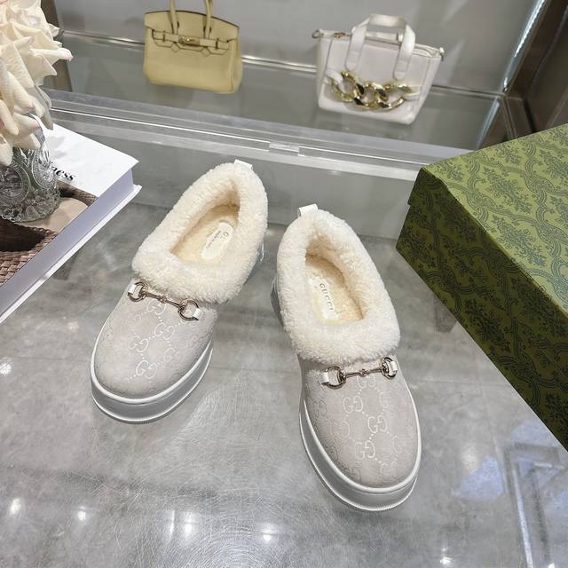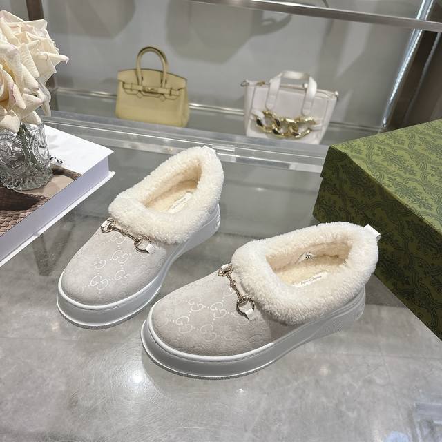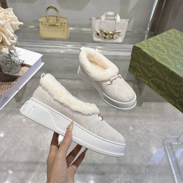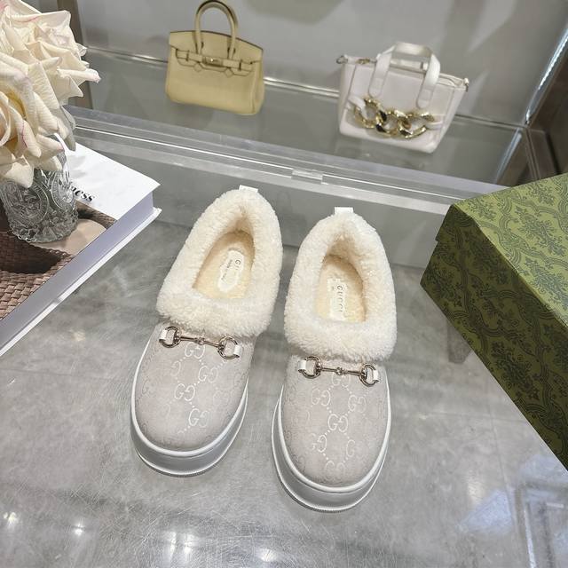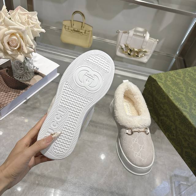 巴黎时装周美丽奴羊皮毛一体浅口雪地靴,反绒牛皮面澳洲进口羊毛内里, DDD 这款女士靴采用麂皮精制而成,兼具舒适感与经典传承。柔软的美利奴羊毛内衬带来温暖奢华的穿着体验,而标志性的Gg橡胶鞋底则以品牌经典的字母组合图案为灵感,增添了一抹大胆的现代气息。 DDD 反绒牛皮面 Ddd 美利奴羊毛衬里 Ddd Gg橡胶发泡超轻鞋底 Ddd 平坦底 Ddd 码数36一42码, DDD