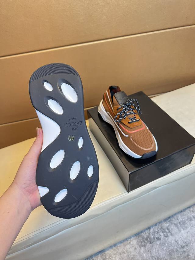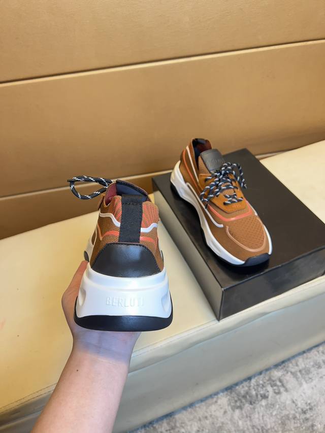 布鲁提 顶级代购男士 Hk专柜同步发售。鞋底:原厂特供原版底,独家活动底超级舒适,原厂跟单货,高品质多色拼接设计做工精致细腻,独一无二, 透气飞织,牛皮里细节决定品质、我们只为用心做好鞋,可随意进出专柜,欢迎对比 码数:38-46