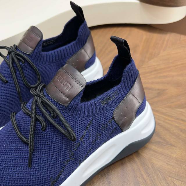 / 布鲁提 Berlut* Shadow男士运动鞋履 ,这双袜子鞋用轻盈且极富韧性的针织面料,高密度飞织制成,搭配招牌的小牛皮皮胚手工擦色改色工艺,还原Zp双层品牌