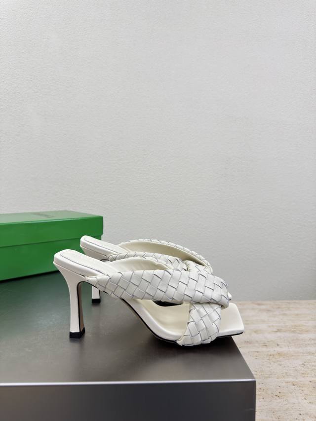 手工编织 Bv Riva 女士穆勒拖鞋 系列 高跟9Cm 手工制作 米白色 这款经典款 简直Bv最新天花板啦 彩色百搭 手工而成 高档舒适 面料选用优质小羊皮