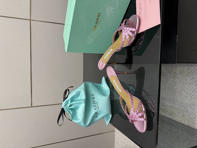 拖鞋 凉鞋280 Aquazzura Zp 原版开模 新品水钻凉拖 采用原版定制真丝制成,原版开模施华洛奇水钻装饰扣,超闪 大底金色标志性菠萝微标赋予单品丰富的品牌内涵与奢华的外观单品真皮大底羊皮鞋垫 创作即外观线条优美流畅又上脚舒适时髦精必入款。 鞋面:水钻 脚垫: 羊皮 大底:意大利真皮大底 跟高:6.5Cm 鞋码: 36-43 40、41、42、43 定做不退换