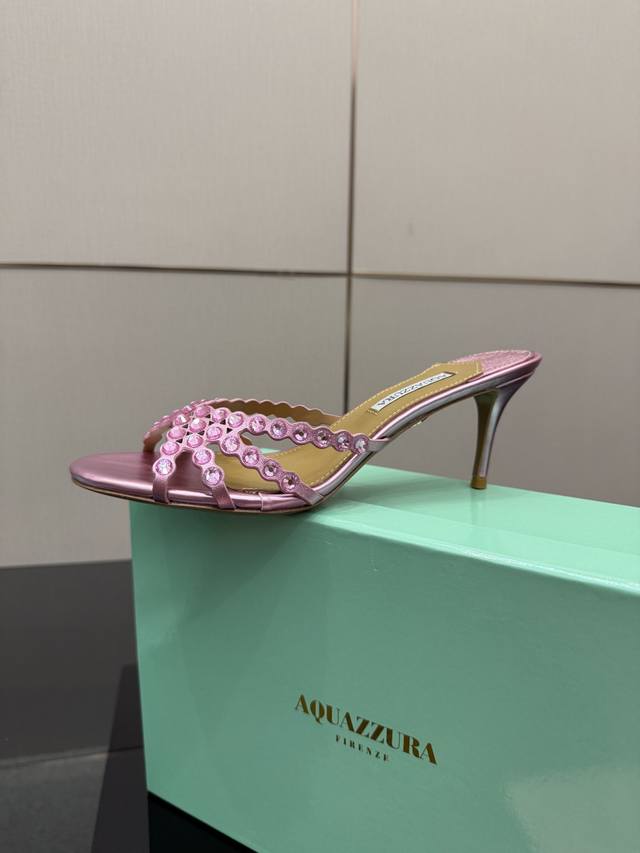 / 拖鞋 凉鞋280 Aquazzura Zp 原版开模 新品水钻凉拖 采用原版定制真丝制成,原版开模施华洛奇水钻装饰扣,超闪 大底金色标志性菠萝微标赋予单品丰富的