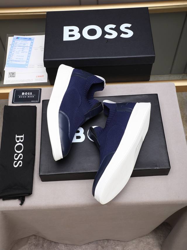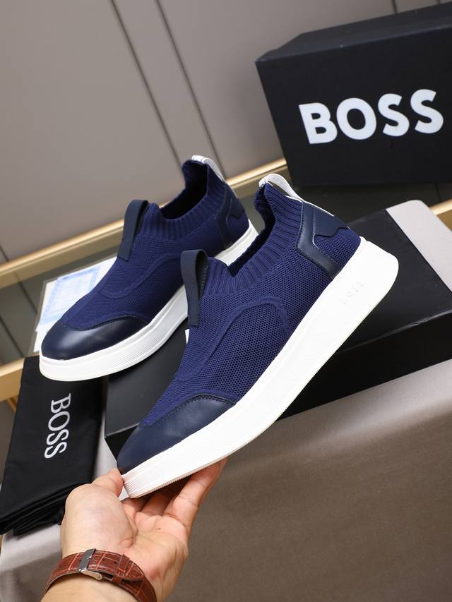 新款 Boss最新款秋季男一脚蹬休闲运动鞋,鞋面采用进口高弹力飞织面料,透气舒适,原版Tpu底轻盈耐磨!Size:38-44 45 定做