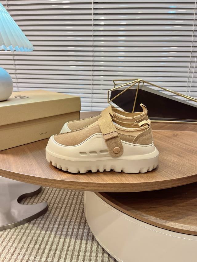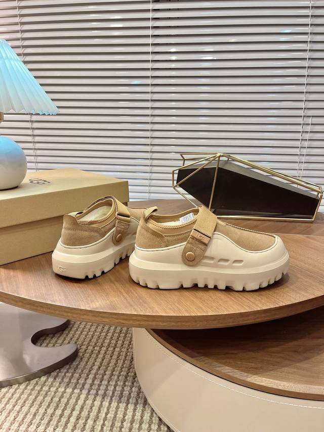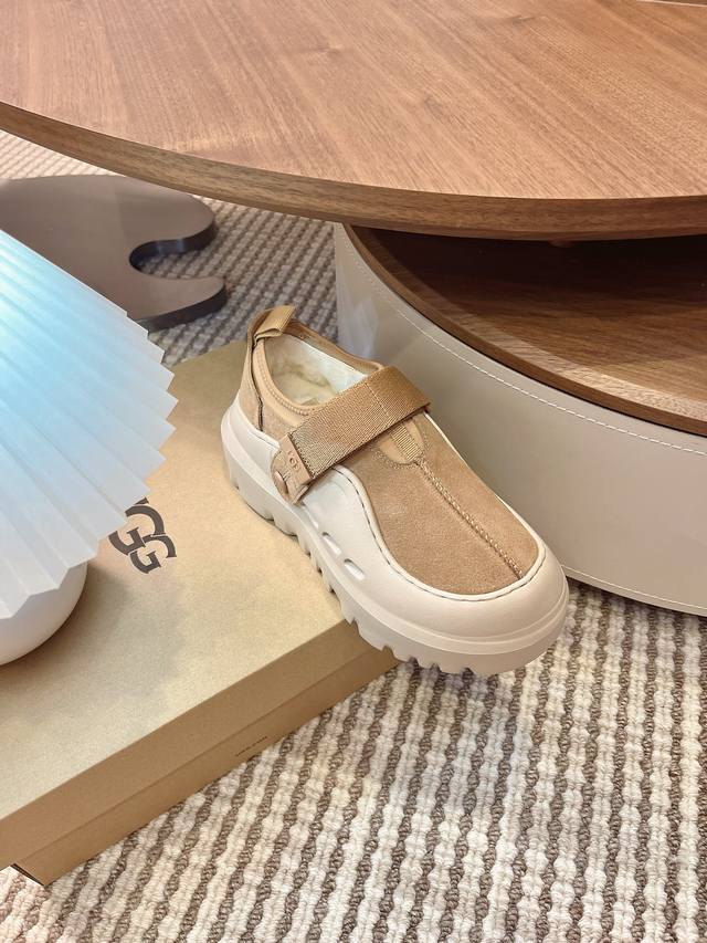 / 新款Ugg上市啦! 秋冬摩登休闲男女款 情侣款低帮鞋 雪地靴 毛毛鞋 被这组丑萌面包鞋拿捏 麂皮+羊皮毛一体内里,一脚蹬超方便 可调节鞋面束带 魔术贴设计适配各