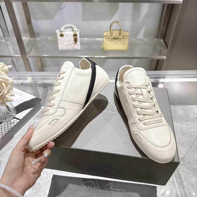 欧文斯 ,情侣款 尺码: DDD 女:35~39 女40.41.42.43定制不退不换 DDD 男:39-44 45.46定制不退不换 DDD Rick Owens 26Ss 新品德训鞋代购级别高版本Rick Owens 瑞克 欧文斯全粒面小牛皮复古运动鞋休闲 暗黑系薄底 DDD 质感细腻,1:1还原刻复油边+两层垫脚、套楦工艺,极度舒适 牛皮垫脚2.5Cm 隐形内增高,男女同款. DDD 面料:原版全粒面牛皮 DDD 内里:原版牛皮内里 DDD
