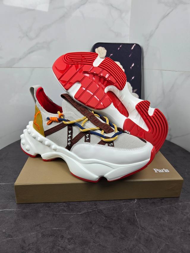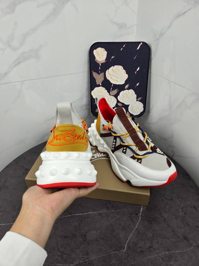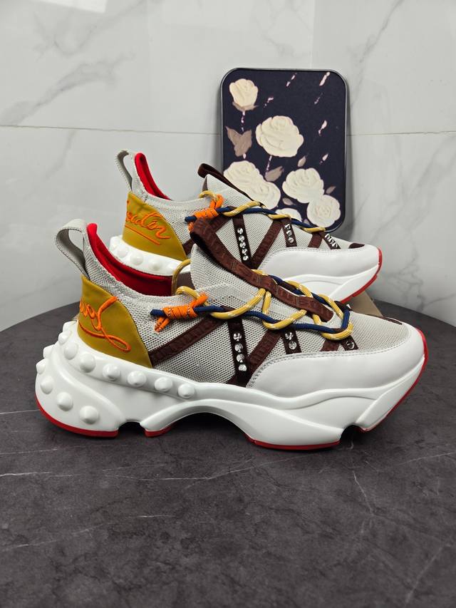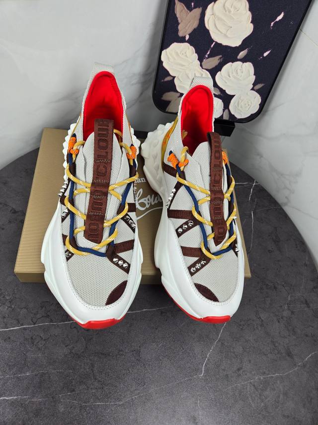 潮牌Chri*Stian Loubou*Tin原单货 DDD 新款 Cl红底鞋最新休闲情侣款系列,鞋面采用进口莱卡+高密透气飞织,环保高弹吸模垫脚 永不脱层, 大底采用超级防滑耐磨pu+抽真空 双色组合 Size:女35-43 男38-47 配手提袋 卡片 鞋拔”全套包装 DDD