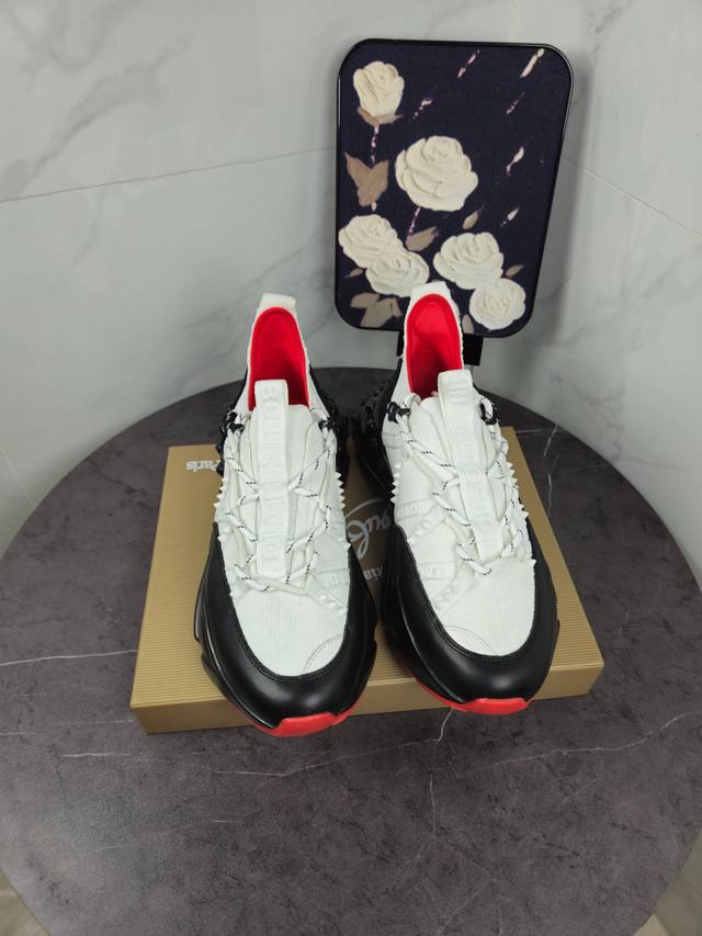 潮牌Chri*Stian Loubou*Tin原单货 DDD 新款 Cl红底鞋最新休闲情侣款系列,鞋面采用进口莱卡+高密透气飞织,环保高弹吸模垫脚 永不脱层, 大底采用超级防滑耐磨pu+抽真空 双色组合 Size:女35-43 男38-47 配手提袋 卡片 鞋拔”全套包装。 DDD