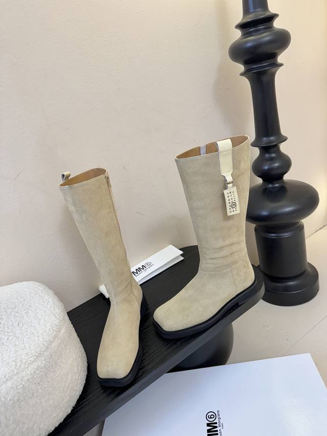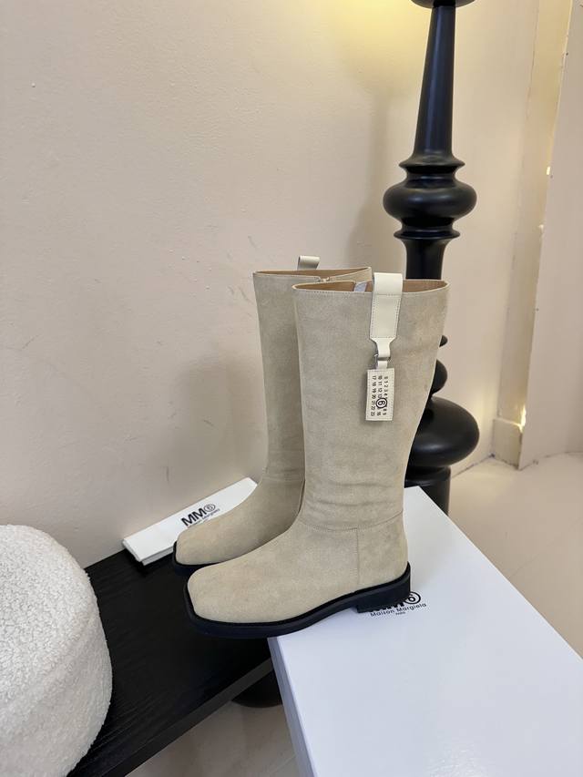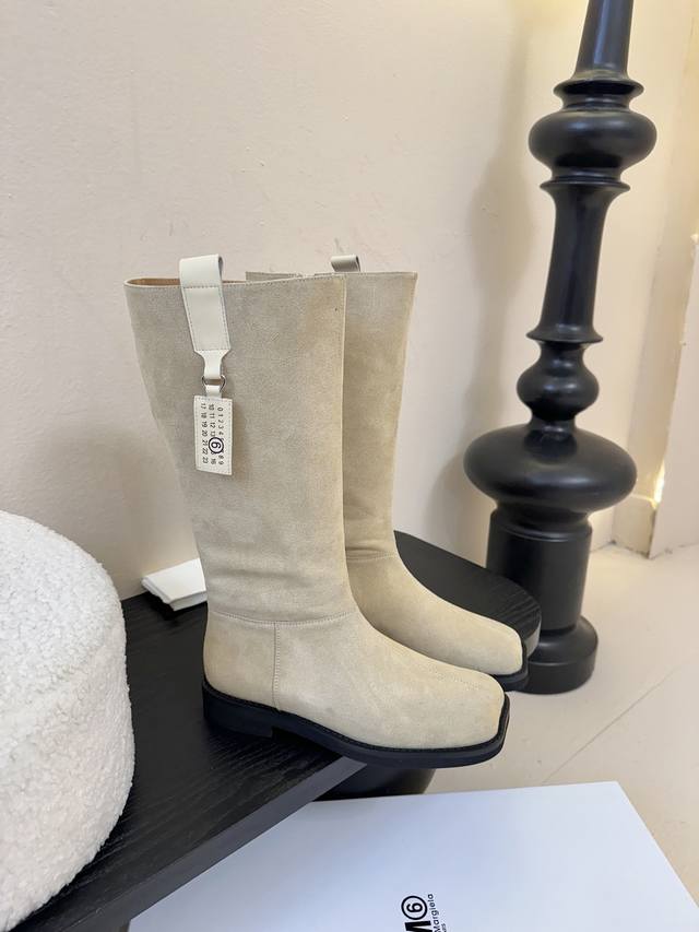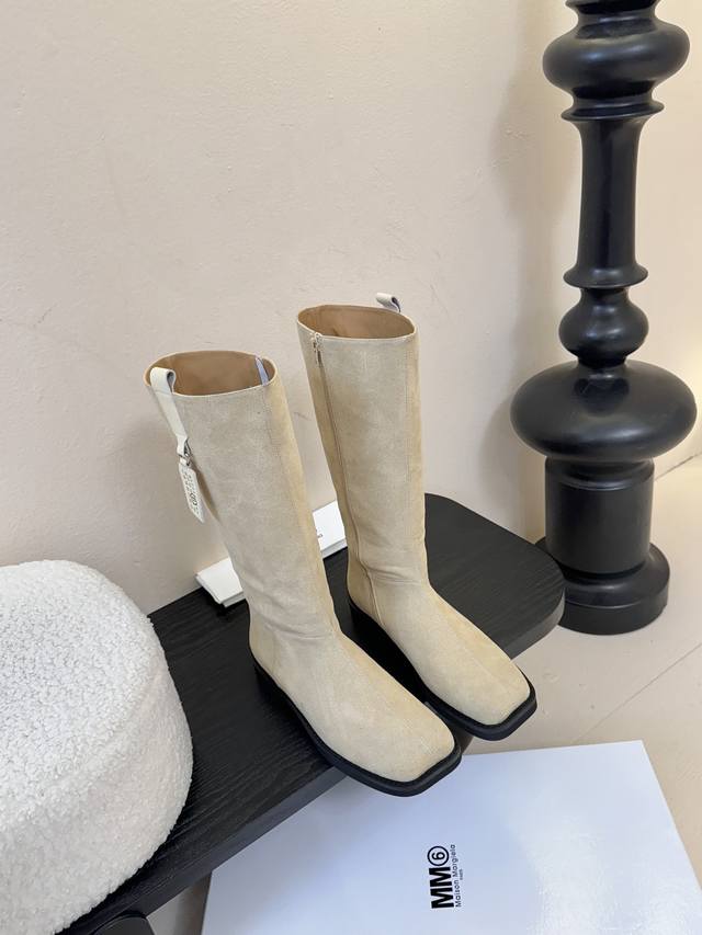 牛皮 牛京480 Mm6 26早秋新款高筒靴真的太爱了 麂皮长靴款 上脚真的不要太好看好吗? 鞋面牛皮、内里牛皮 发泡底 码数:35-39 40定做 配原版一致包装