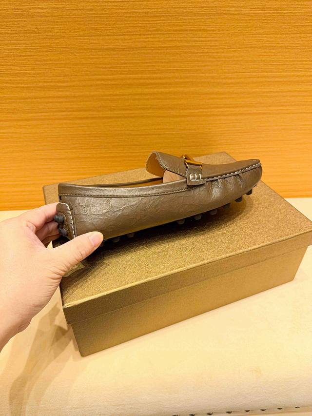 L 家 男士豆豆鞋 官网同步 市场顶级版本 牛皮粒纹+黑色牛里 原版包装 。棕色,尺码:38-45。