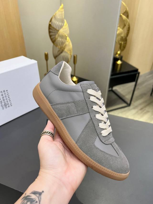 独家顶级版本 M*M6M*Aison M*Argiela~25Vs新款复古休闲系列 Maisonmargielamm6德训休闲板鞋 复古拼色休闲鞋 光听到复古风就能立刻想到经典M*Arginal,复古时髦,春夏秋冬配色干净清爽集合,舒适,酷飒,休闲于一体的风格设计,很马吉拉风格,上脚无压力十足先锋元素,原版包装 一个轻奢潮款多元素结合玛吉拉设计师设计这一款德国训练鞋延续了经典的T形真皮拼接,经过设计团队多次的精心改良,只为让您体验最原始的军旅味道 ~设计师设计工艺:结合运动休闲拉邦套楦顶级工艺,不脱底,不