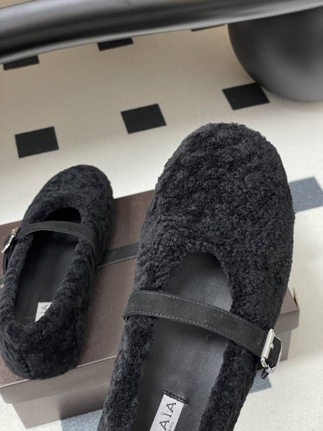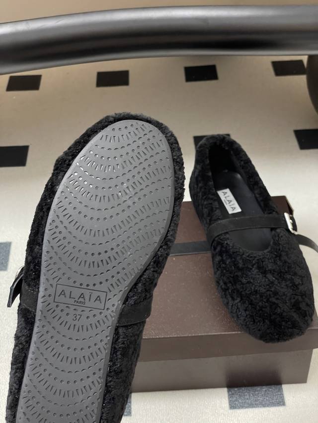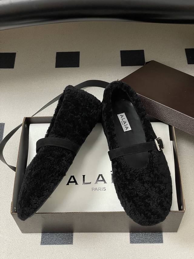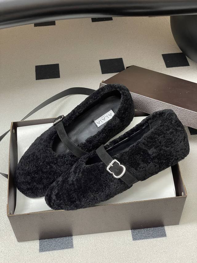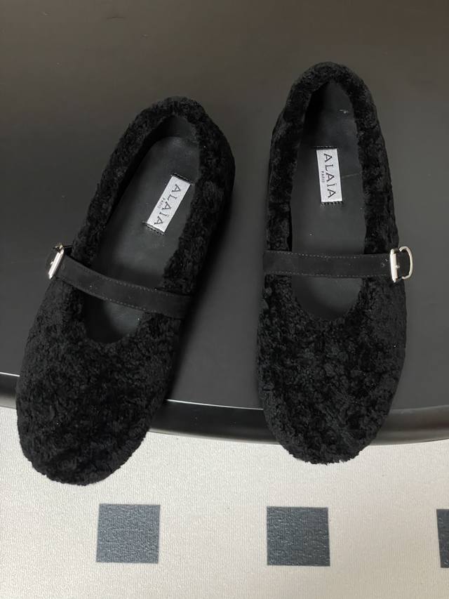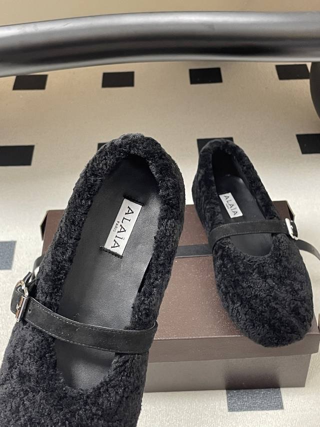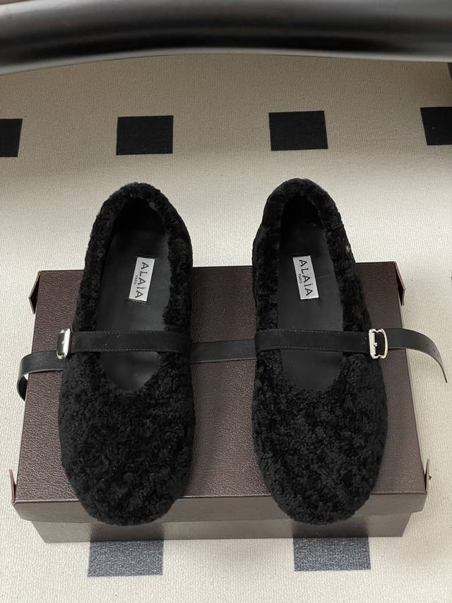 皮带盒20下单备注 默认普通盒 25Fw秋冬新款 Alaia阿莱亚 羊羔毛法式芭蕾舞鞋羊毛面玛丽珍平底单鞋老钱风 原本更具有柔美浪漫气息的芭蕾平底鞋采用麂皮绒鞋面,传统的芭蕾风格具有了更多施展的可能性,也更能与当代时尚结合。 女性气质十足的芭蕾元素可不只一种风格,刚柔并济,既优雅又有力量,才是芭蕾舞鞋最好的打开方式。每一处细节都彰显着法式精致。 将可爱与显腿细完美融合 让你在寒冷的冬日 既能享受温暖 又能散发迷人魅力 面采用柔软细腻的麂皮绒 触感如同冬日里的暖阳般温暖 羊羔毛内里 不仅触感柔软 更将冬日氛