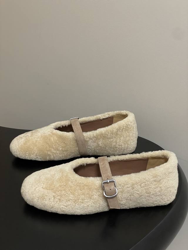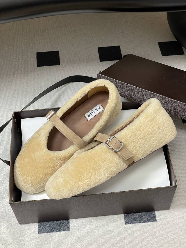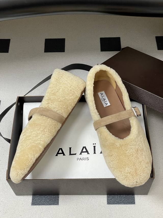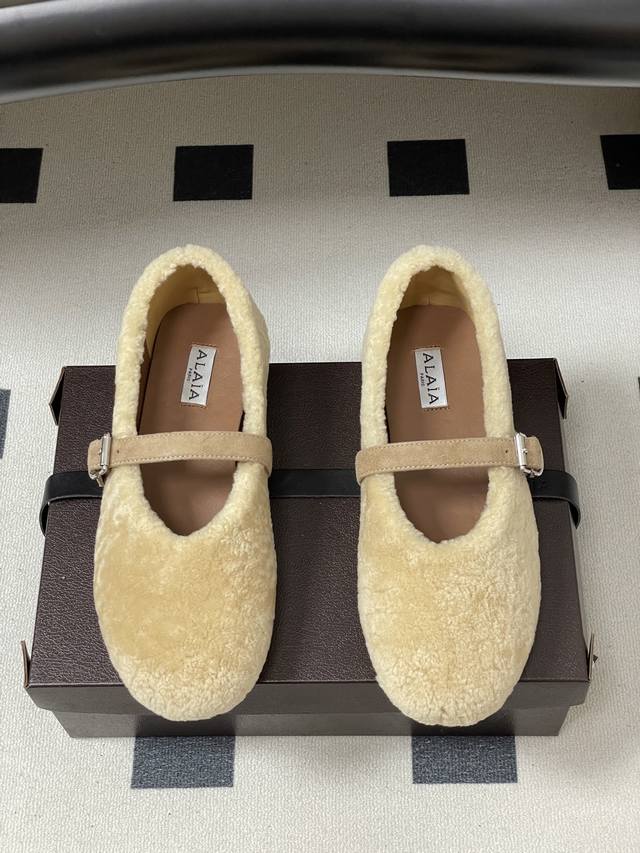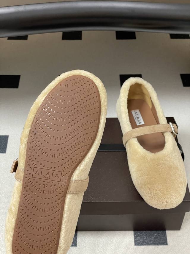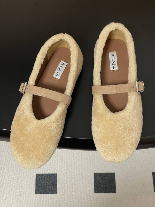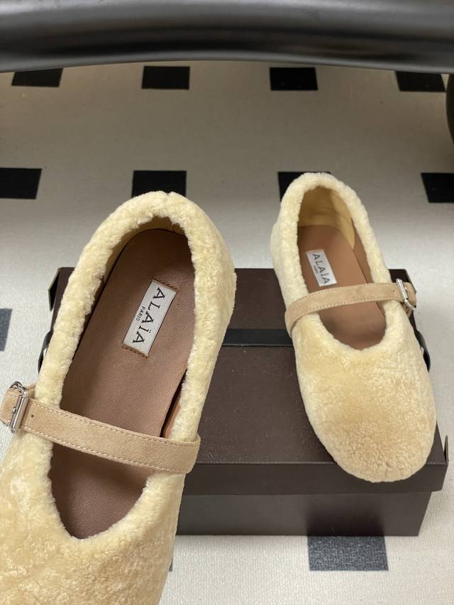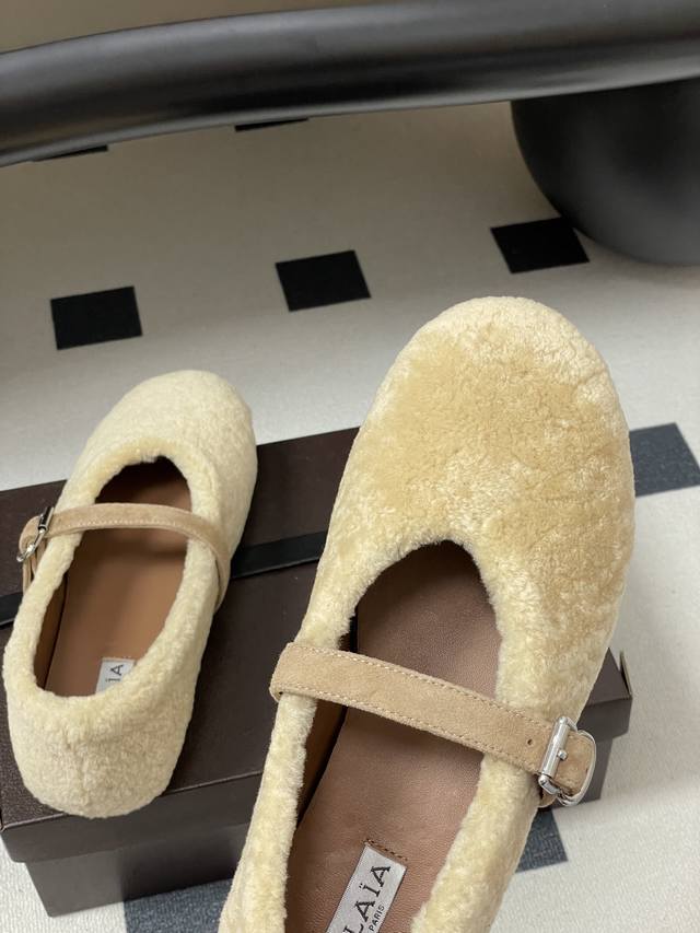皮带盒20下单备注 默认普通盒 25Fw秋冬新款 Alaia阿莱亚 羊羔毛法式芭蕾舞鞋羊毛面玛丽珍平底单鞋老钱风 原本更具有柔美浪漫气息的芭蕾平底鞋采用麂皮绒鞋