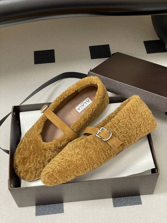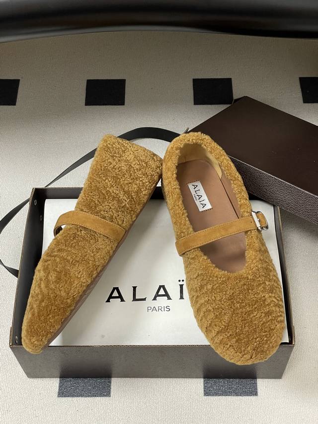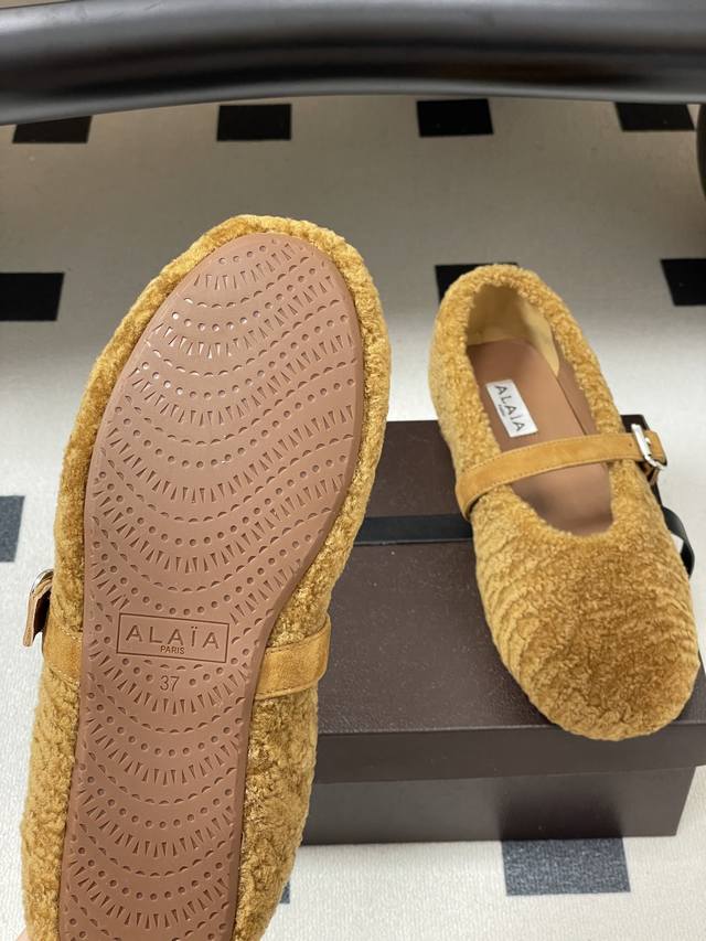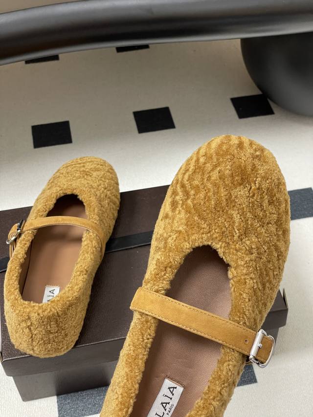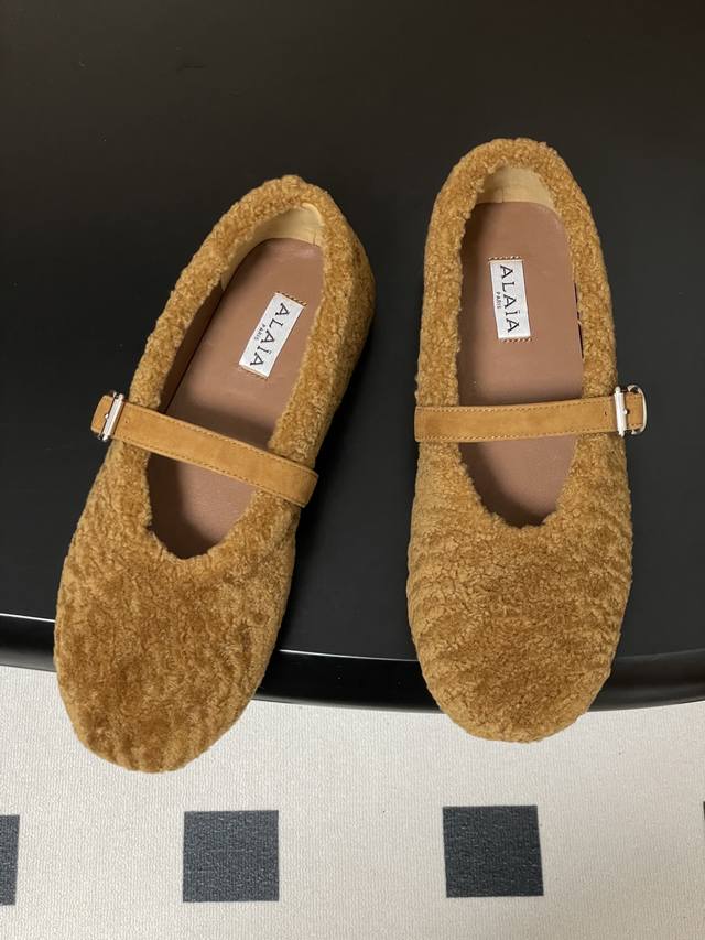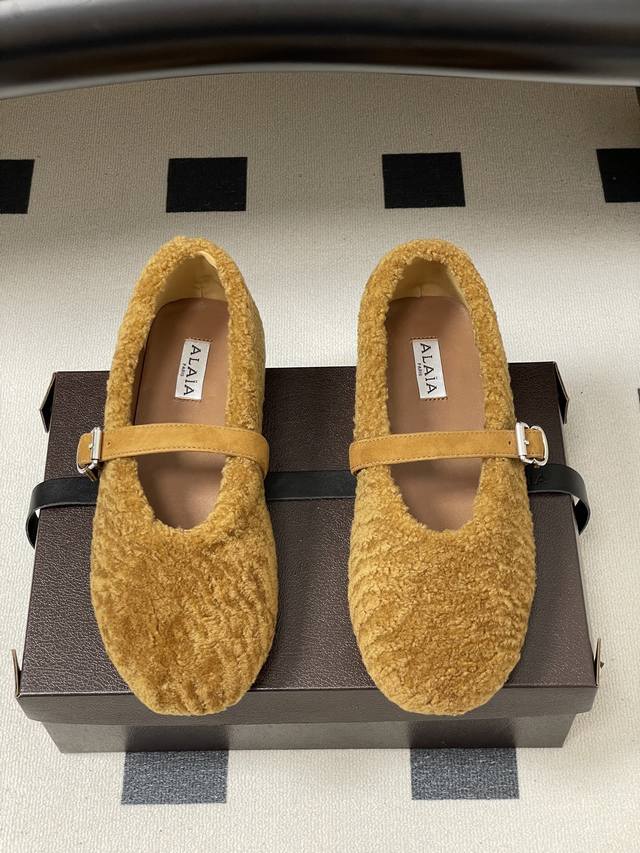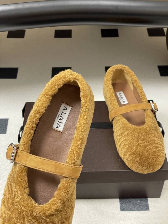 皮带盒20下单备注 默认普通盒 25Fw秋冬新款 Alaia阿莱亚 羊羔毛法式芭蕾舞鞋羊毛面玛丽珍平底单鞋老钱风 原本更具有柔美浪漫气息的芭蕾平底鞋采用麂皮绒鞋