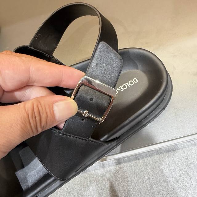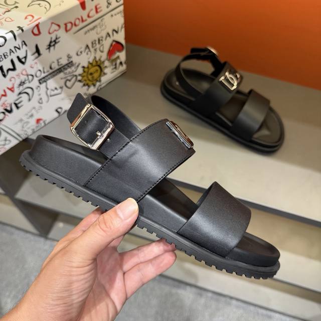 码数38-46 Dg 男士凉鞋拖鞋。展现 高订风格设计。Dg饰带点缀以铝质 Dg搭扣提升格调。搭配舒适的同色调凹口鞋底,可与短裤或牛仔裤轻松搭配,打造精致造型。主体:牛皮革,科技面料里料:牛皮革,搭配可调节饰带搭配铝质 Dg搭扣 Eva 内底 同色调凹口橡胶外底拼接结构