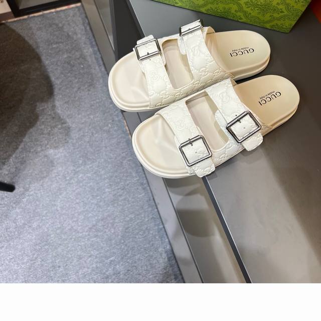码数38-46 Gg家高端男士夏季拖鞋, 经典老花系列,一字带宽松设计,别致的色彩拼接效果,个性鲜明,时尚潮流穿搭必备款式,轻盈舒适。轻质韧性橡胶内底,微型凸纹发泡外底,超级舒适脚感!