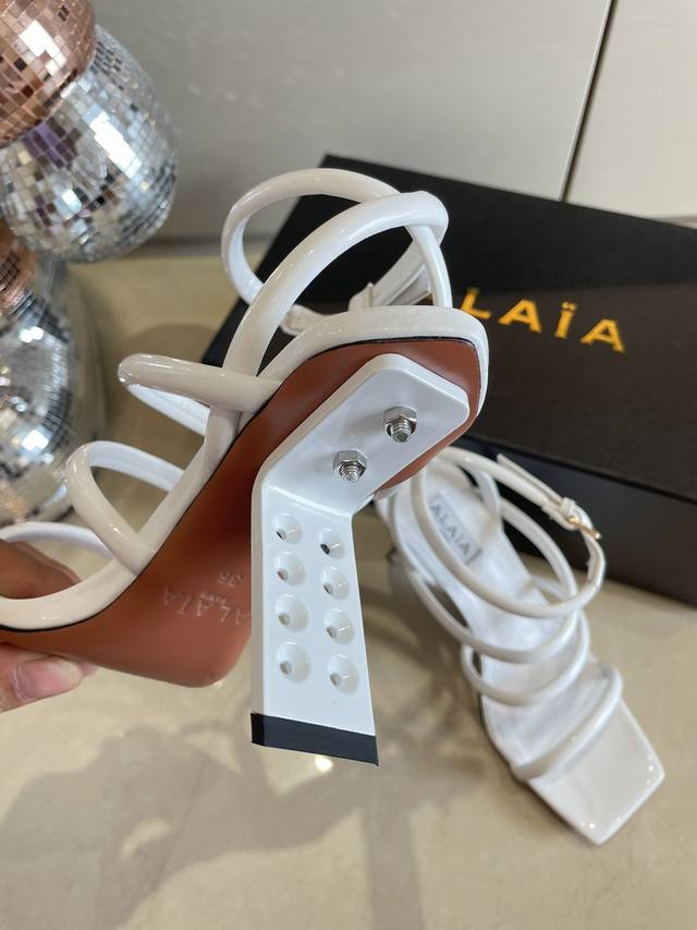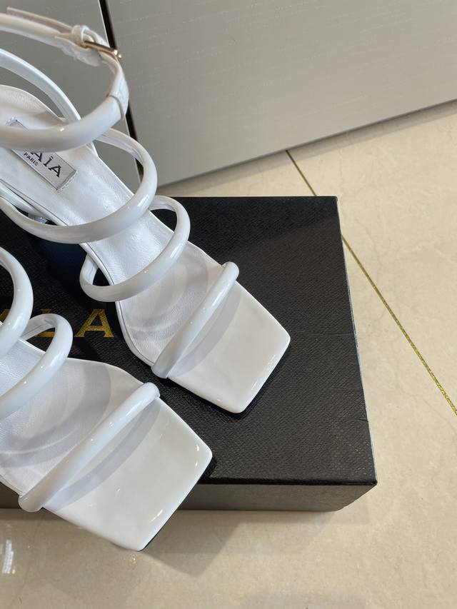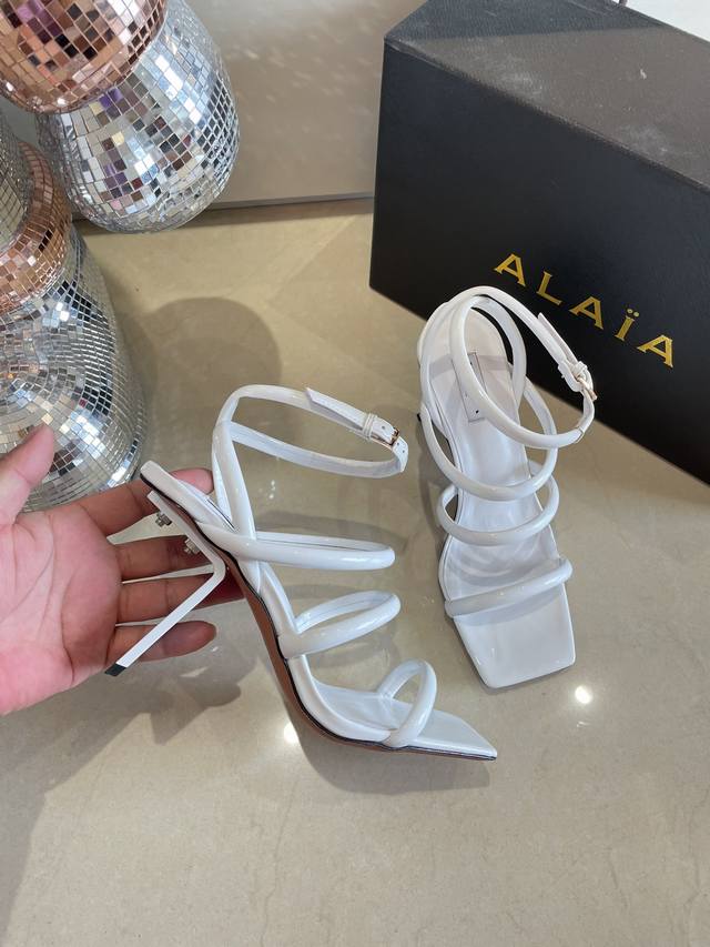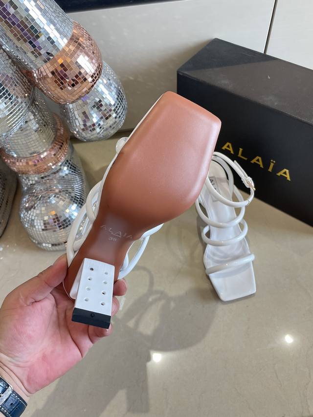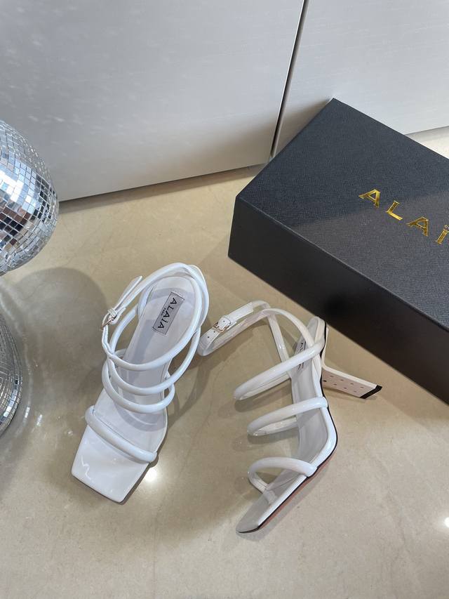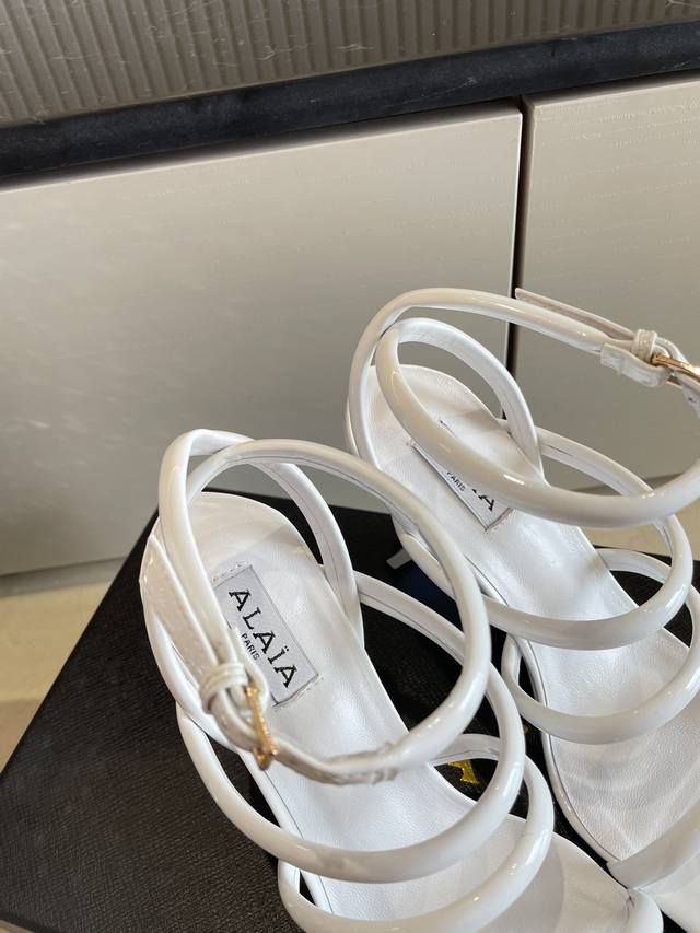 罗马凉鞋 钢琴烤漆 几何跟 Alaia 条带拖鞋来自巴黎 一见倾心 DDD 白色小牛漆皮 DDD 精钢几何跟型 DDD 阿莱娅还有另外性感的一面 DDD 配上不同款式,不同风格都能轻松驾驭,无论牛仔裤,西装裤,还是百褶裙,都能将你的穿搭提升到时尚,优雅和卓越之中 DDD 面料选用小牛漆皮 搭配性感极致 透明胶片 DDD 内里羊皮 DDD 大底原版一致真皮大底 DDD 34 35 36 37 38 39 40 41 34 40 41定制 DDD 配置原版包装 DDD