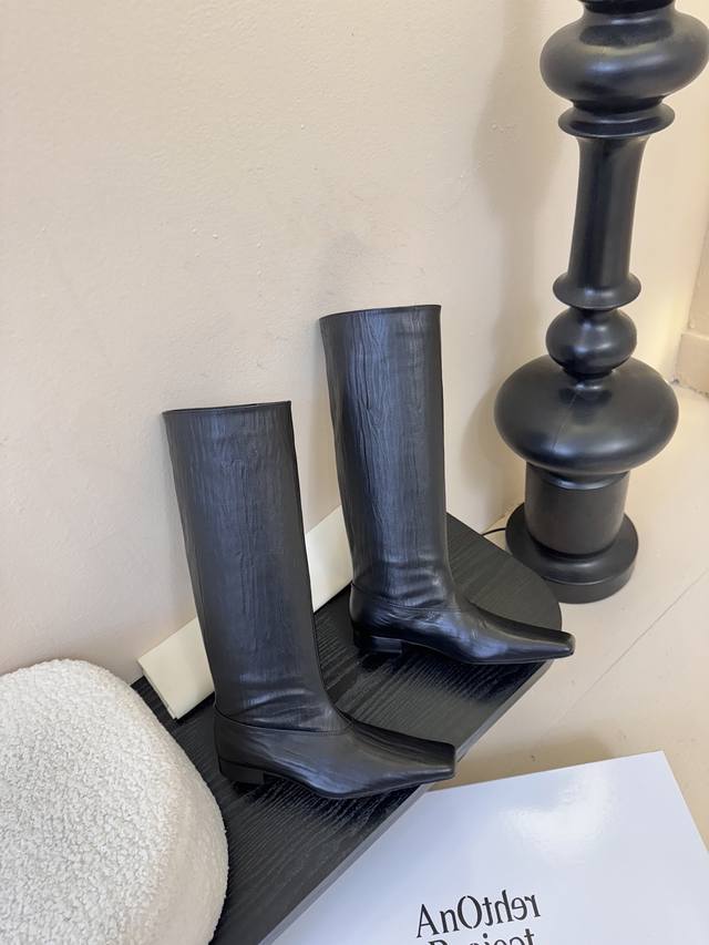 / 羊京 牛皮 Anotherproject2025秋冬新款复古骑士靴宝藏靴子酷飒有范儿的战靴,把时髦穿在脚上,对版牛皮 高丝光羊京面料,羊皮内里,码数:35-39