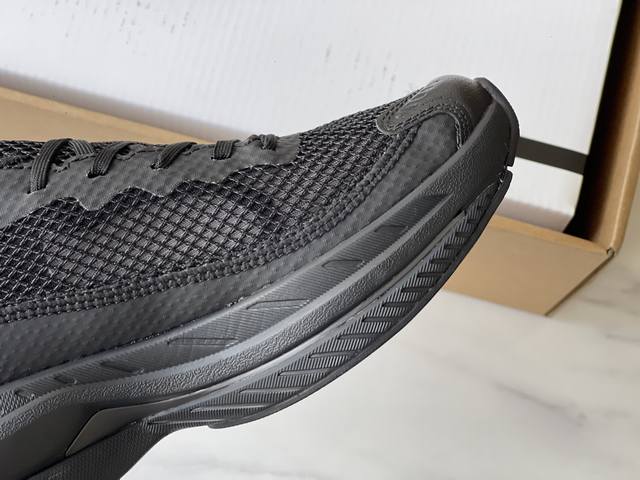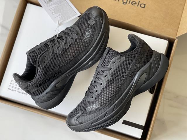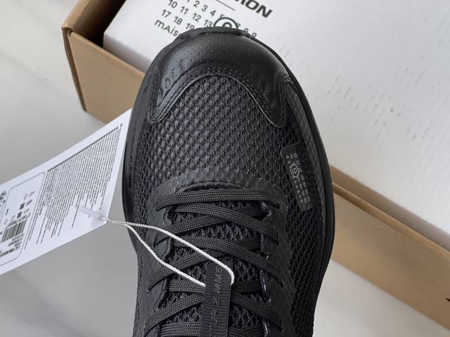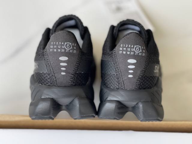 诠释Mm6的前卫美学,鞋面采用大孔网眼材质搭配同色系压胶与裁片,鞋侧有双方品牌标识,搭载全长碳纤维板 Energy Blade与Energy Foam缓震系统,后掌加厚加宽,兼具推进力、缓震回弹与稳定性。