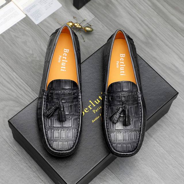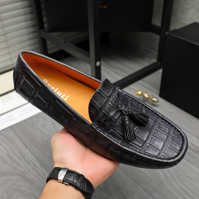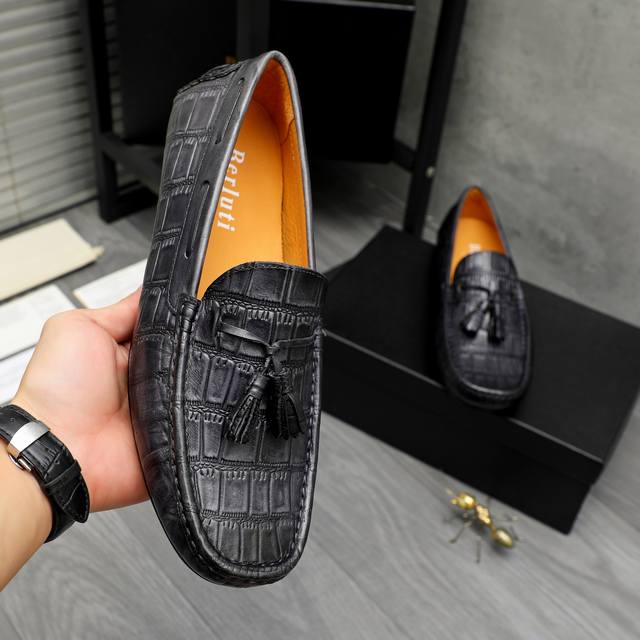 调工厂p价 商品商标:Berluti 伯鲁提 休闲套脚鞋 正码码数: 38-45 45.定做不退换 商品材料:精选优质石头纹牛皮鞋面 猪皮内里 橡胶大底