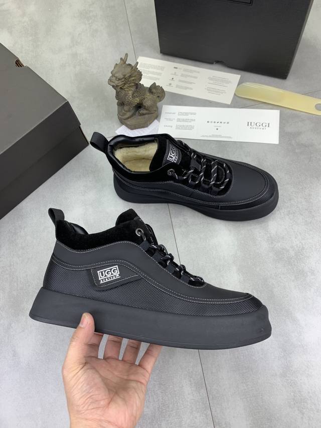 调工厂p价 男装男鞋 运动原单上新 新款 Iuggi男鞋 外表真牛皮 内里澳洲羊毛一体 轻便易上脚 品牌Logo高级感拉满 男款!男款!市面很少见到 复古户外鞋