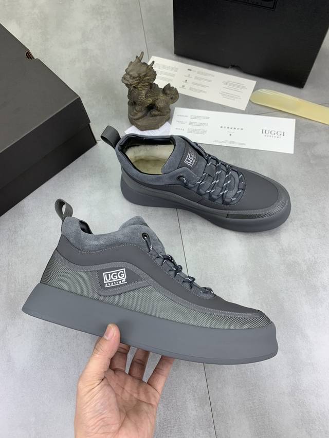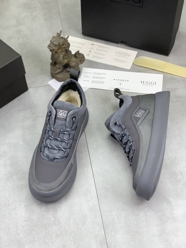 / 调工厂p价 男装男鞋 运动原单上新 新款 Iuggi男鞋 外表真牛皮 内里澳洲羊毛一体 轻便易上脚 品牌Logo高级感拉满 男款!男款!市面很少见到 复古户外鞋