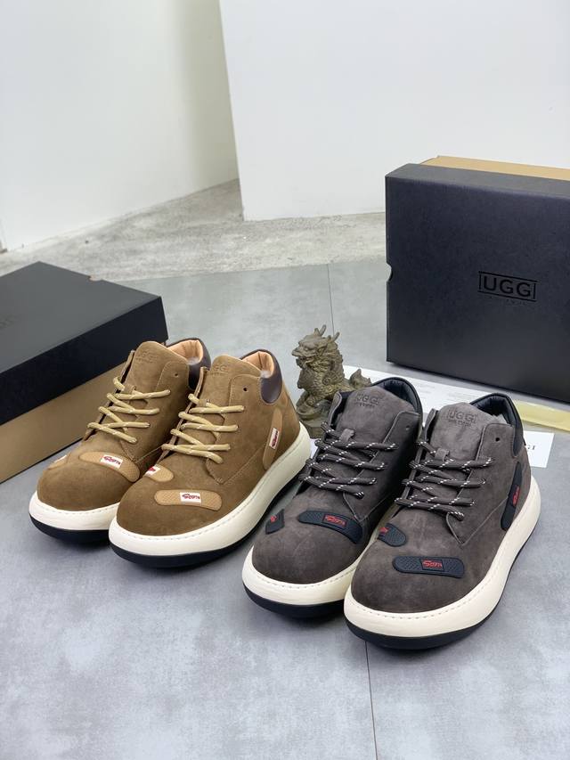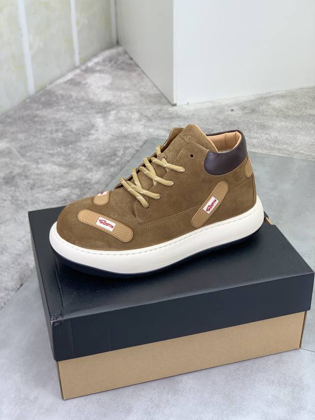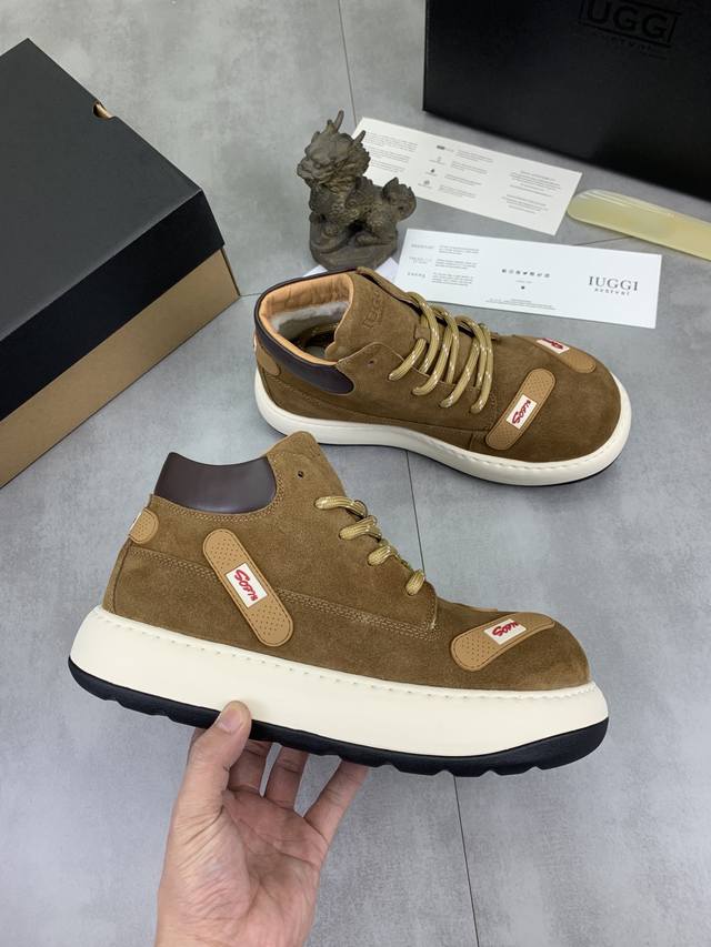 / 调工厂p价 男装男鞋 运动原单上新 Iuggi 冬季Q版丑萌创口贴大黄靴男潮牌磨砂真皮马丁靴高帮厚底大头鞋 原创设计师翘头靴 冬季新款复古男鞋 潮流时尚 厚底面