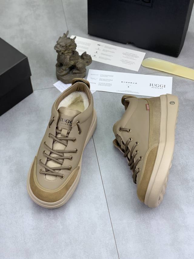 / 调工厂p价 男装男鞋 运动原单上新 Iuggi 最新时尚潮品 超酷新品厚底面包鞋 户外运动鞋防滑减震 超轻便 头层牛皮 耐磨耐脏 质感细腻 内里澳洲进口羊毛 舒