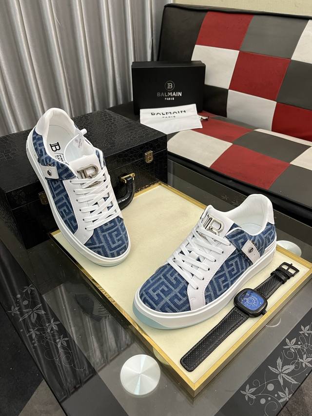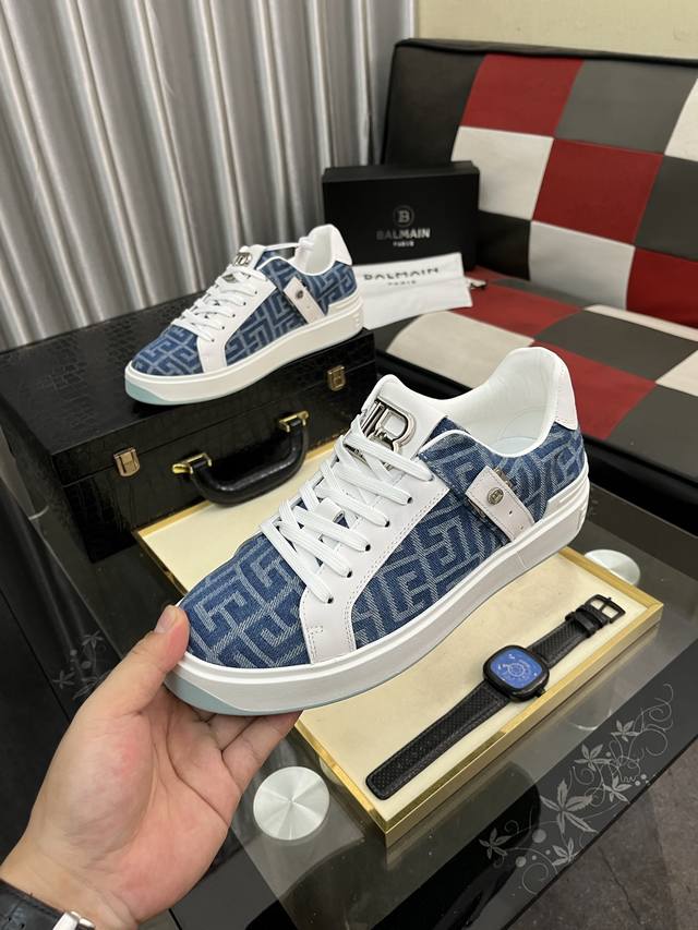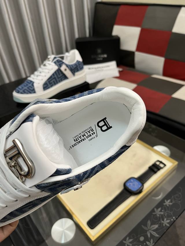 调工厂P价 男装男鞋 运动原单巴尔曼Balmain复古德训鞋,阿甘鞋,时尚运动鞋,这款系带休闲运动鞋妥妥的美式复古风格~ 配色让人眼前一亮,经典百搭单品,选用进口高丝光牛皮面料,原版双色Tpu鞋底,耐弯耐折防滑! Size:38-442色可选