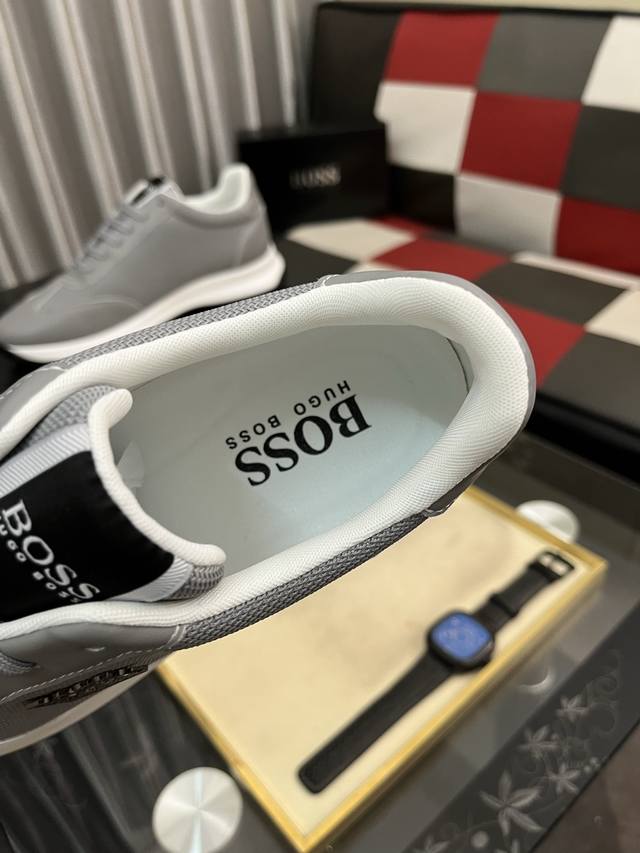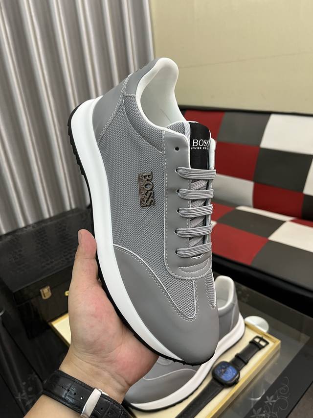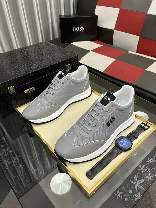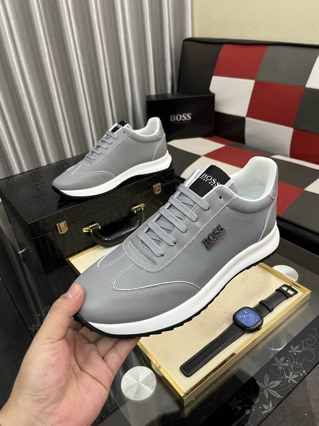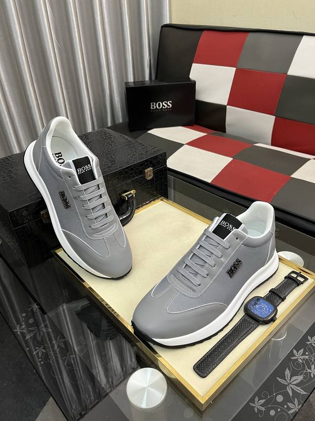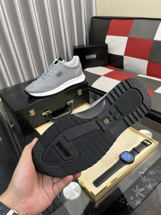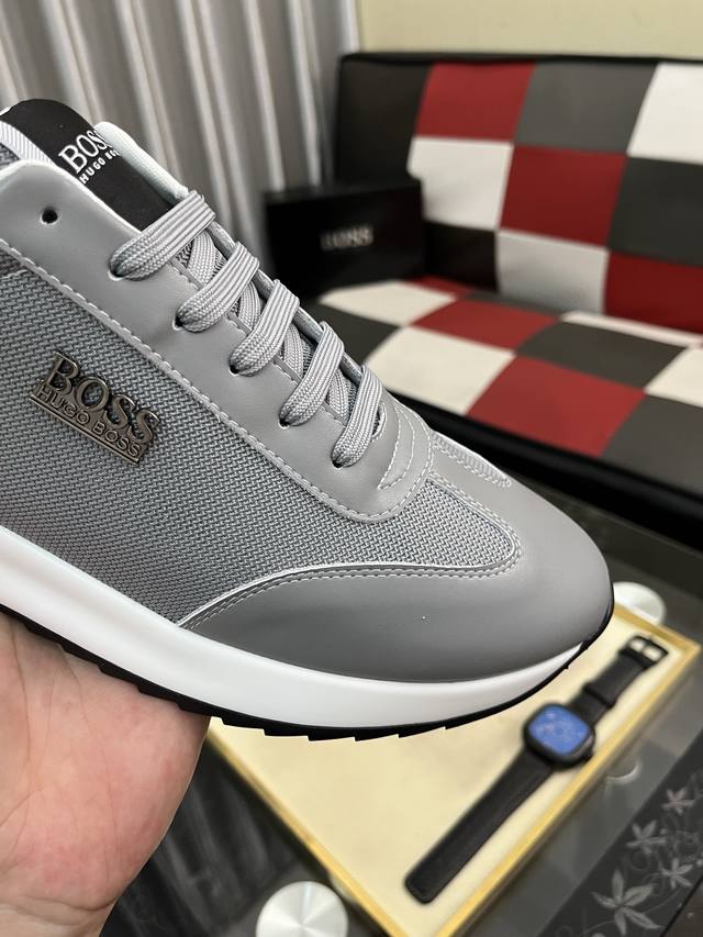 调工厂P价 男装男鞋 运动原单 Boos 男鞋休闲鞋原单品质鞋面采用进口小牛皮,超透气舒适内里做工精细,高端大气。有时尚典范造型。发泡透明耐磨大底,穿着舒适,值得拥有。码数:38–444色可选