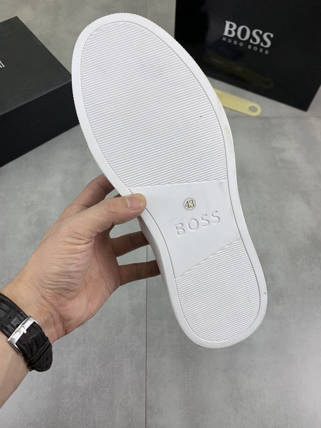 调工厂p价 男装男鞋 运动原单 Boss 原版系带男鞋 经典高帮款休闲鞋本款是官方主打经典款,质量,原厂名师制作,采用进口飞织透气面料舒适透气网布內里羊皮鞋垫,完美楦型,大方时尚的设计,吸引了众多消费者的追捧,适合司机驾车行驶,要的就是市场最品质,颜色:4色可选 码数:38--44 45 定做 DDD