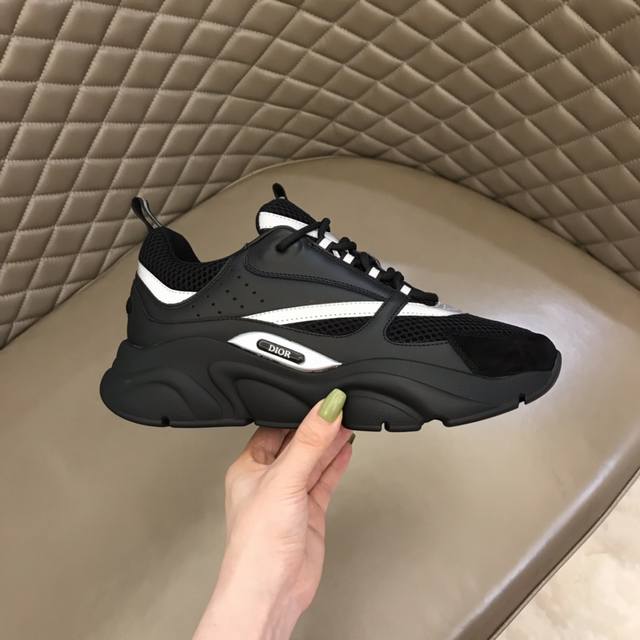 调工厂p价 男装男鞋 运动原单 D X 高版本 B22男士慢跑时尚运动鞋,这款单品从复古慢跑鞋汲取灵感。采用厚实的低帮设计,以黑色牛皮革以及网眼织物拼接鞋面,搭配黑白相间的刻花橡胶鞋底。黑色网眼织物鞋舌和鞋跟支撑与黑色鞋带相得益彰,侧面带有浮雕“Di~R”标志装饰。这款运动鞋可与经典西装混搭造型,增添运动时尚气息! DDD Size:39-45 38、46可定做 DDD