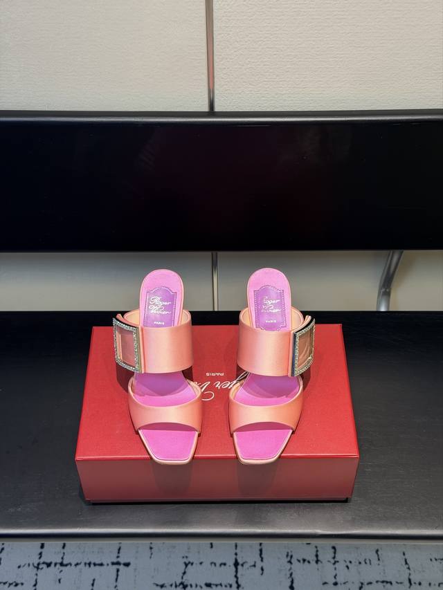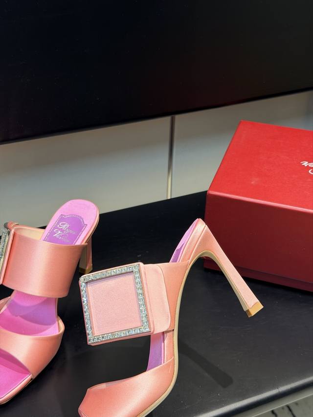 FFF 顶级品质 DDD Roger Vivier Fw25 New Arrival~钻扣高跟鞋 DDD Rv家的Trompette系列高跟鞋,丝缎+方形水钻扣,超有辨识度走路稳又优雅,穆勒鞋设计穿脱方便,鞋垫粉色细节超加分 DDD 论搭裙装还是裤装,都能轻松提升都市淑女气质,晚宴,派对,日常都能驾驭,时髦又实用 DDD Size:35-40 DDD