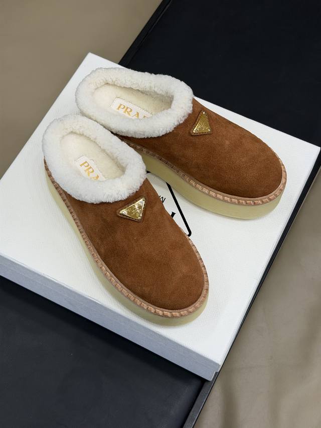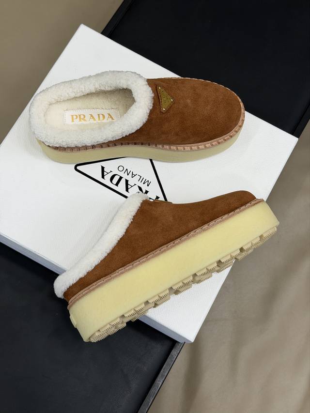 顶级品质 prada Fw25 New Arrival~ p家25秋冬美拉德系列毛毛鞋 经典款型搭配羊毛材质;时髦且有温度的系列 丝光牛反绒鞋面,质感细腻柔和,