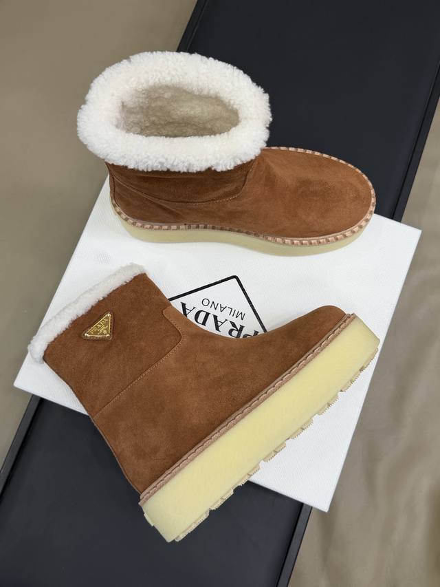 顶级品质 prada Fw25 New Arrival~ p家25秋冬美拉德系列毛毛鞋 经典款型搭配羊毛材质;时髦且有温度的系列 丝光牛反绒鞋面,质感细腻柔和,