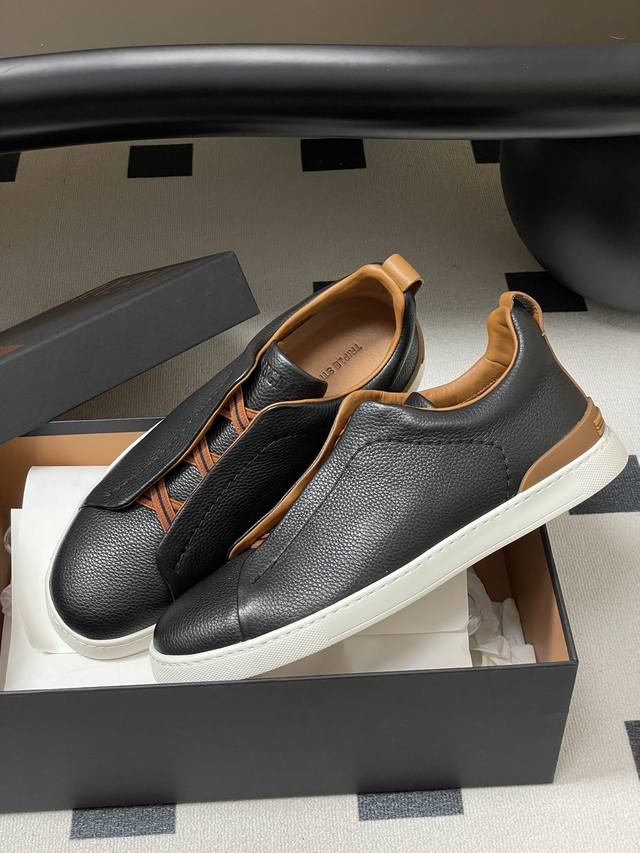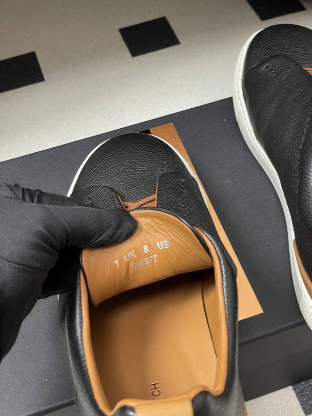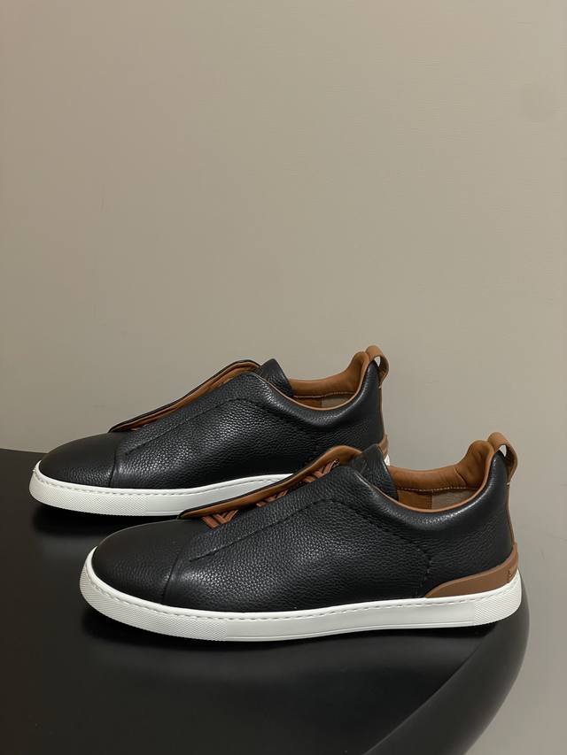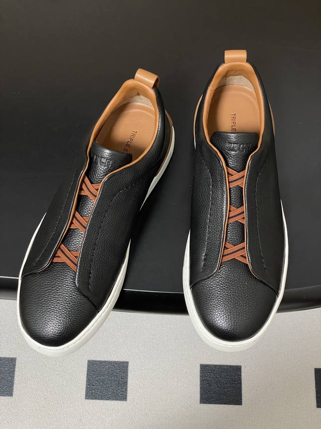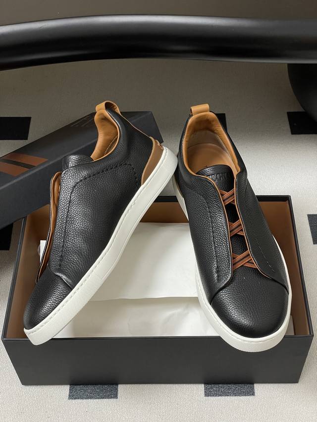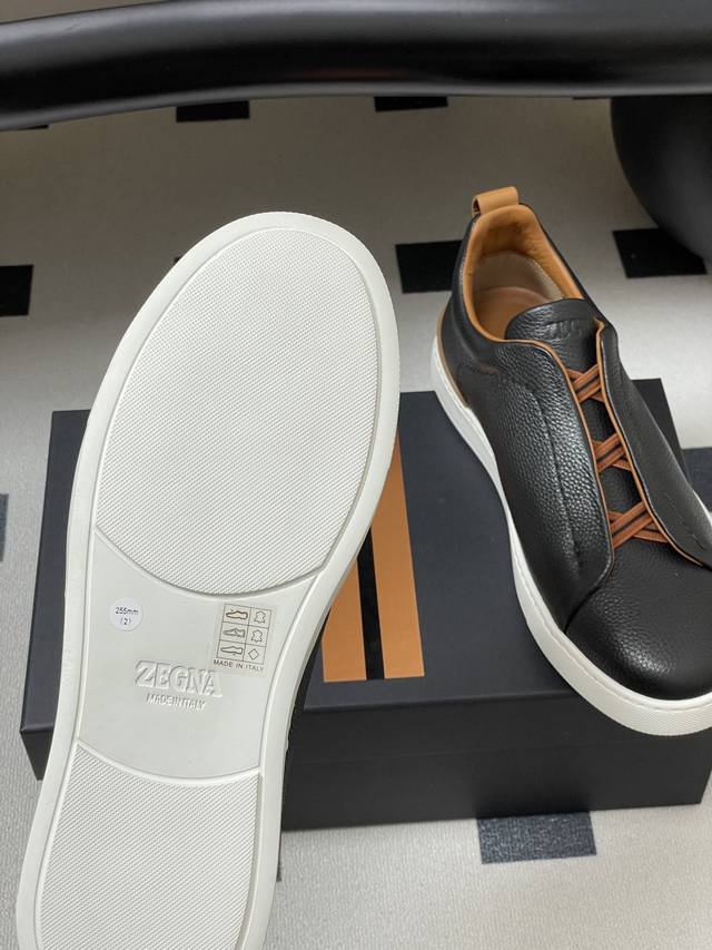 顶级品质 Ddd Zegna杰尼亚 Triple Stitch运动鞋Ts-Secondskin 奢华商务休闲男鞋 Ddd 这款Nero Oasi Triple Stitchtmsecondskin奢华休闲鞋以精选小牛皮制成,赋予其更胜以往的灵便之感。杰尼亚标志性三重交叉松紧细节确保穿脱灵便,同时令人联想到品牌精裁夹克的传统手工缝制工艺,致敬杰尼亚的精湛工艺传承。采用尤为柔软的轻盈鞋面,配以白色橡胶鞋底。Triple Stitchtmsecondskin奢华休闲鞋凝聚超过百年的精湛工艺,智慧传承以及对创新的