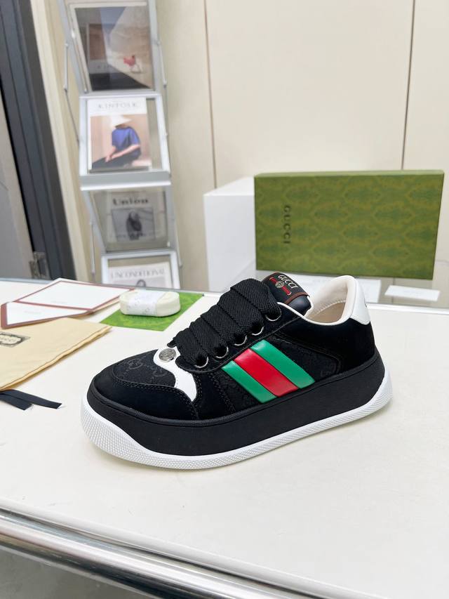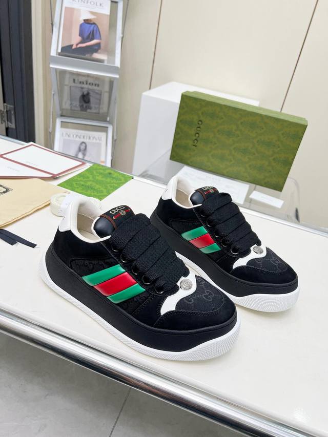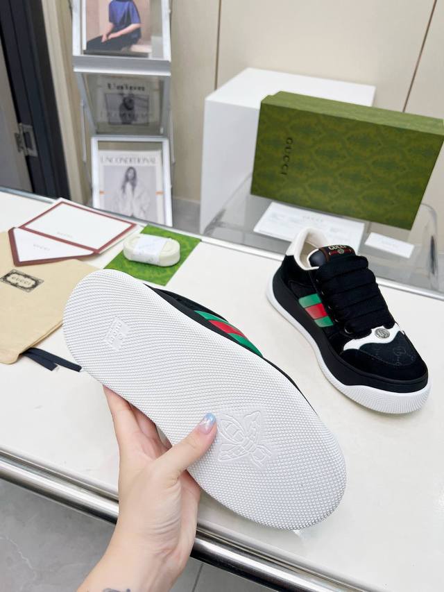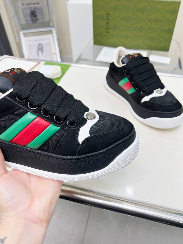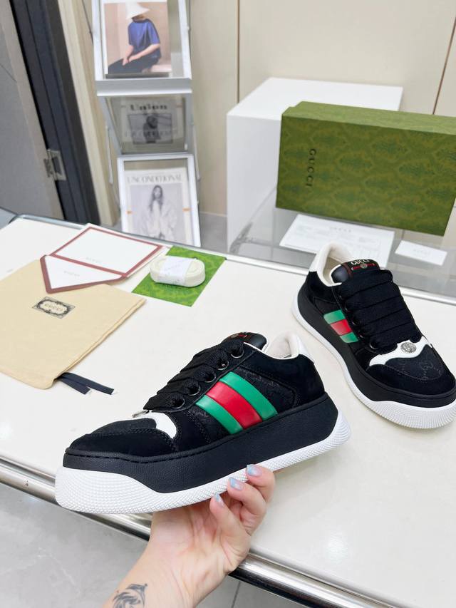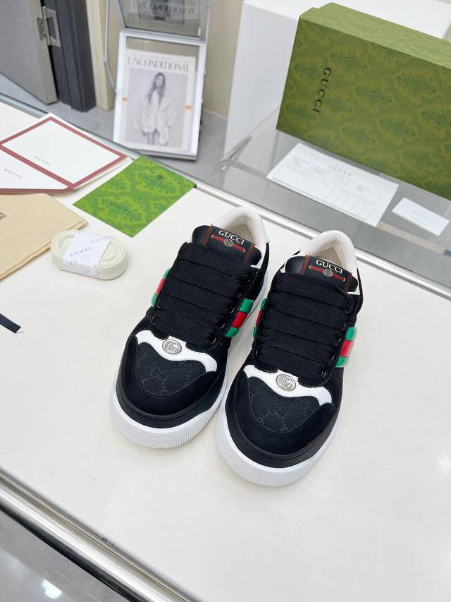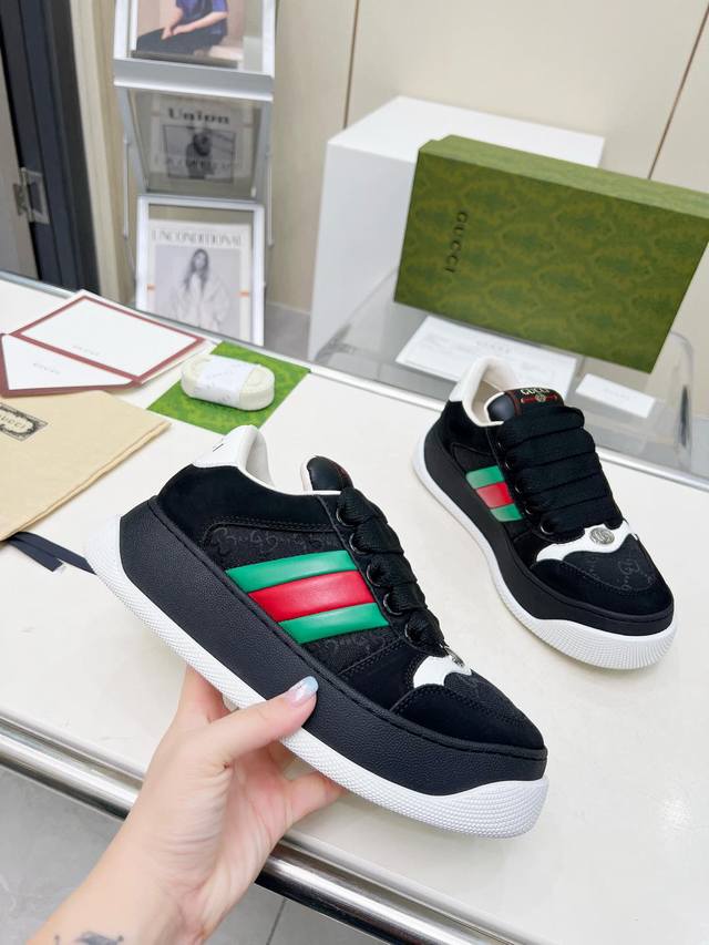 / 顶级版本G家最新爆款老爹鞋引潮流的步伐全新系列继续从其他时代的日常生活中寻找灵感,并融入当下的设计精髓3D印花进口头层粒面牛皮制作,饰以经典双 G 字母交织图案