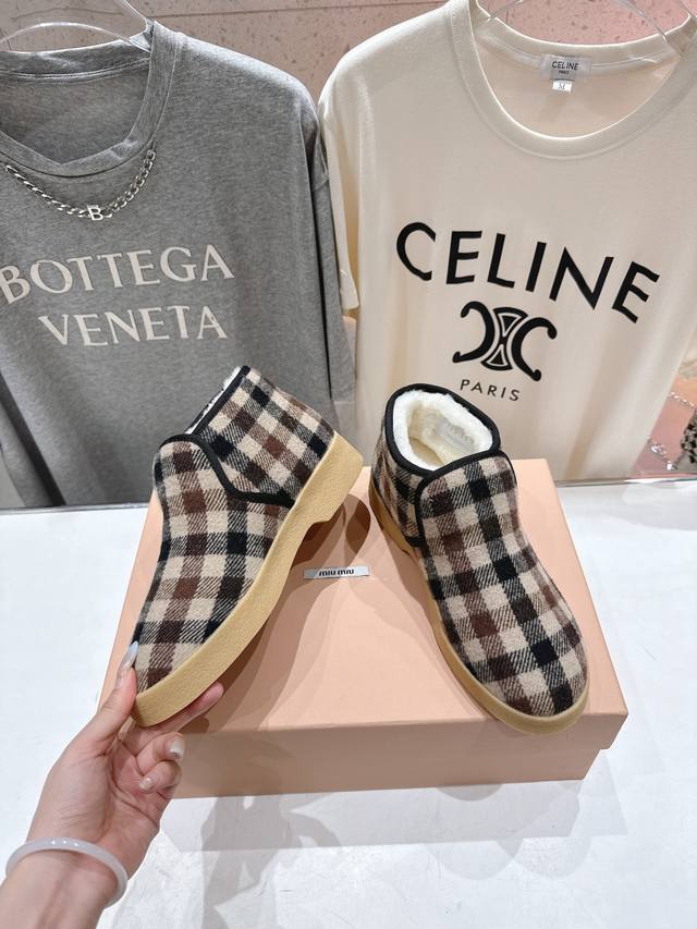 高版本出厂 DDD Miumiu 缪缪F022 2025Ss秋冬走秀款 羊毛小短靴雪地靴毛毛鞋高帮棉鞋 DDD 经常出现在各大时装杂志封面 各路明星、小红书博主都有钟爱,上脚尤为惊艳到你的一款闭眼入都是不会后悔 DDD 上脚非常舒服超级稳 搭配还是可咸可甜 Zp开发五金、订制颜色 DDD 鞋面:进口绒布面 DDD 内里:澳洲进口羊卷毛 DDD 鞋底:Zp开模橡胶大底 DDD 码数:35-40 40.定制不退换 DDD 全套包装 DDD