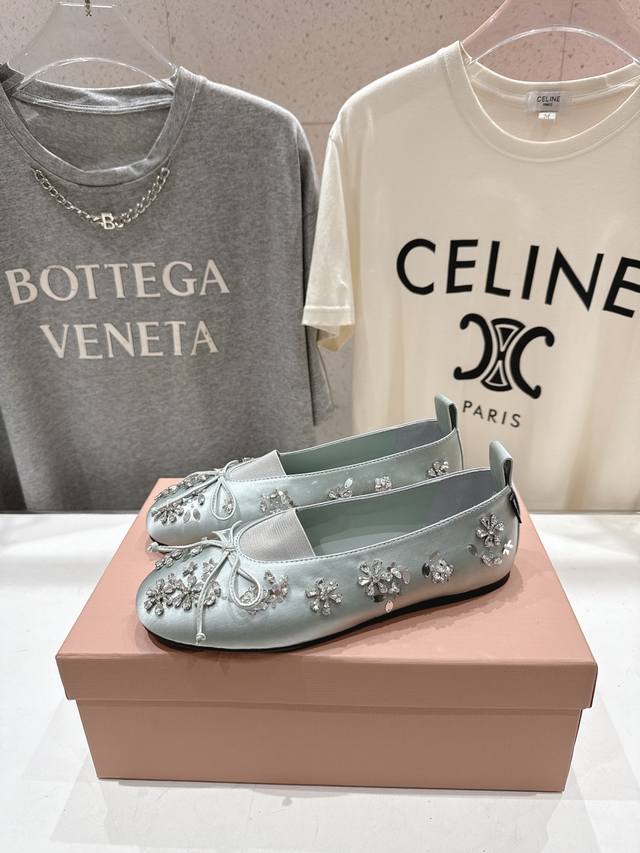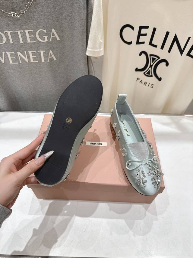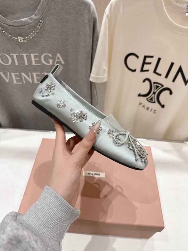 高版本出厂 Ddd Miumiu 缪缪F033 2026Ss新款法式仙女风玛丽珍平底鞋单鞋 Ddd 芭蕾平底鞋亮相2026春夏时装秀,焕新演绎Miumiu系列标志性的风格。 Ddd 别致的设计伴以蝴蝶结与松紧带,展露柔美风情。从华丽的裙装,到干练简洁的裤装。这双芭蕾舞鞋无一不能驾驭,妥妥的让自己成为造型的亮点。 Ddd 面料:定制原版真丝布+进口水钻 Ddd 内里垫脚:羊皮 Ddd 大底:原版橡胶大底 Ddd 码数:35-39 40.41定做不退换 DDD