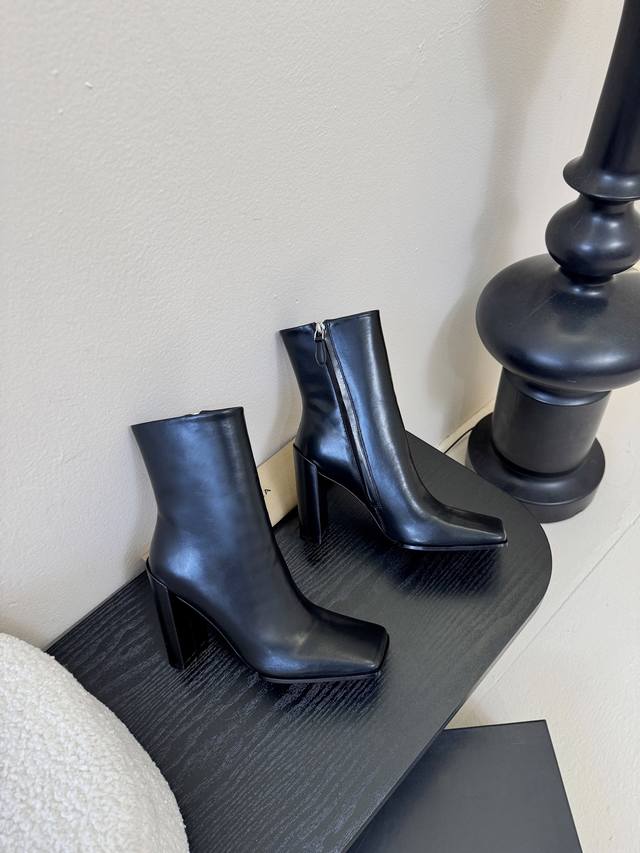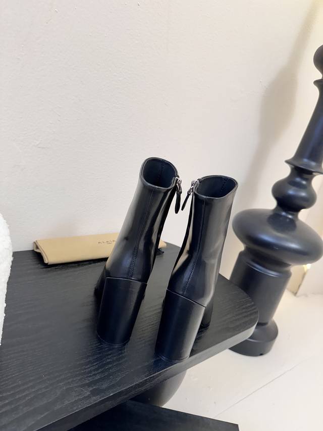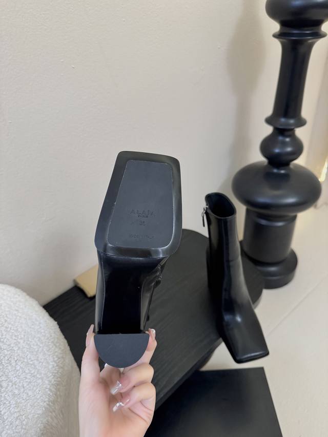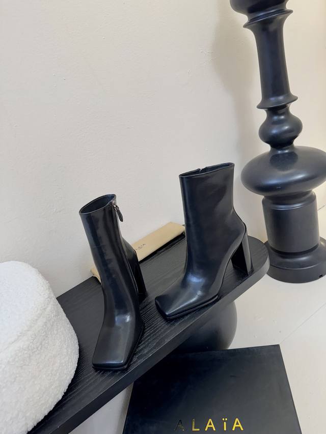 2025秋冬新款 Alaia阿莱亚 极简风时髦精侧拉链粗跟方头短靴高跟及踝靴. 时尚达人都在寻觅一双能兼顾舒适与风格的短靴 而这双无疑是这个季节的最佳答案! 经典方头设计打破传统楦型的局促 给予脚趾自由舒展的空间,为整体造型增添了一抹硬朗与精致 无论搭配裙装还是裤装 都能轻松提升时尚度 。粗跟的设计堪称神来之笔 高度恰到好处 既为身姿增添挺拔感 又确保行走时的稳健与舒适,即使长时间穿着也不易疲惫 无论是穿梭在熙熙攘攘的都市街道 还是奔赴重要的商务场合 它都能成为你最得力的时尚伙伴 在穿搭上 这双短靴堪称“