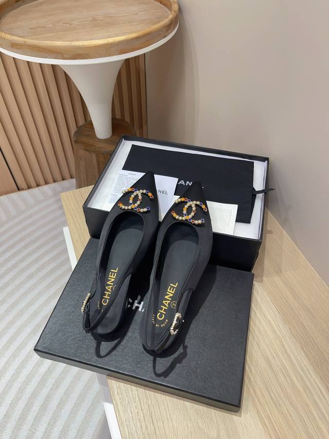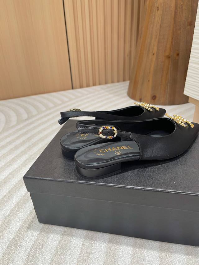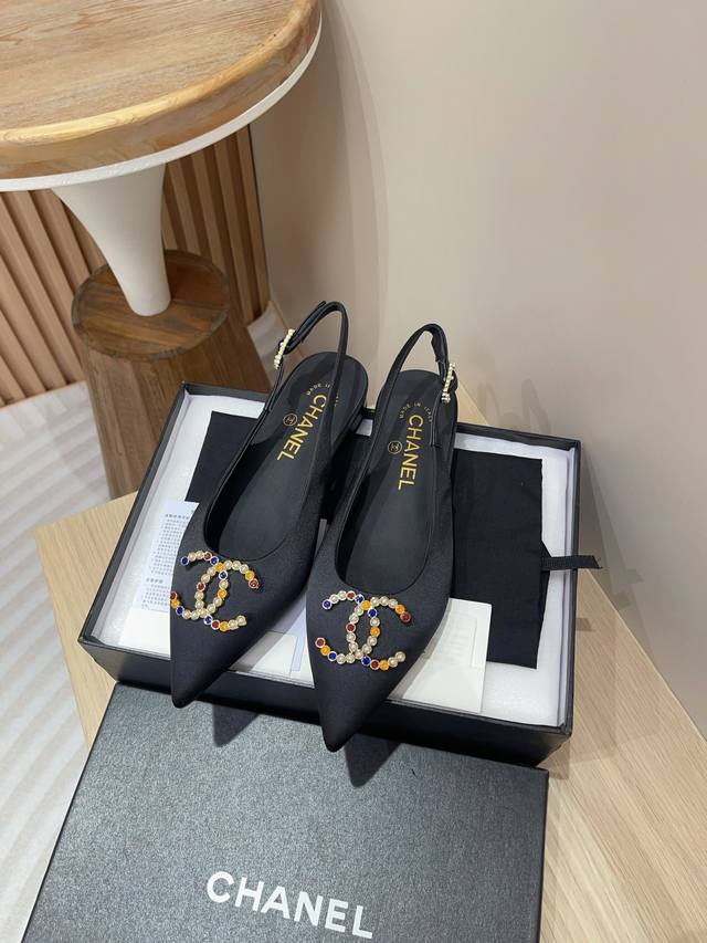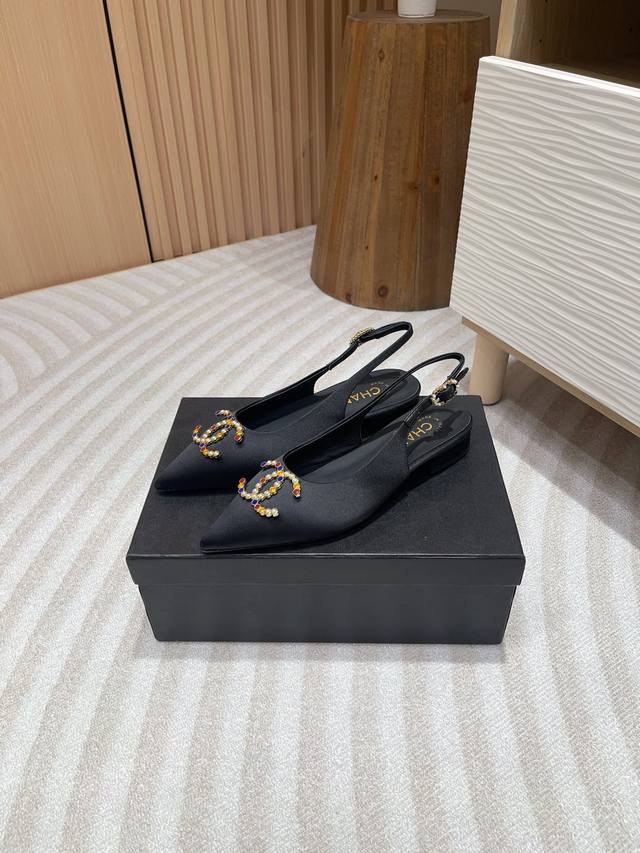 24Fw新款chane*小香彩珠扣平底 高跟凉鞋