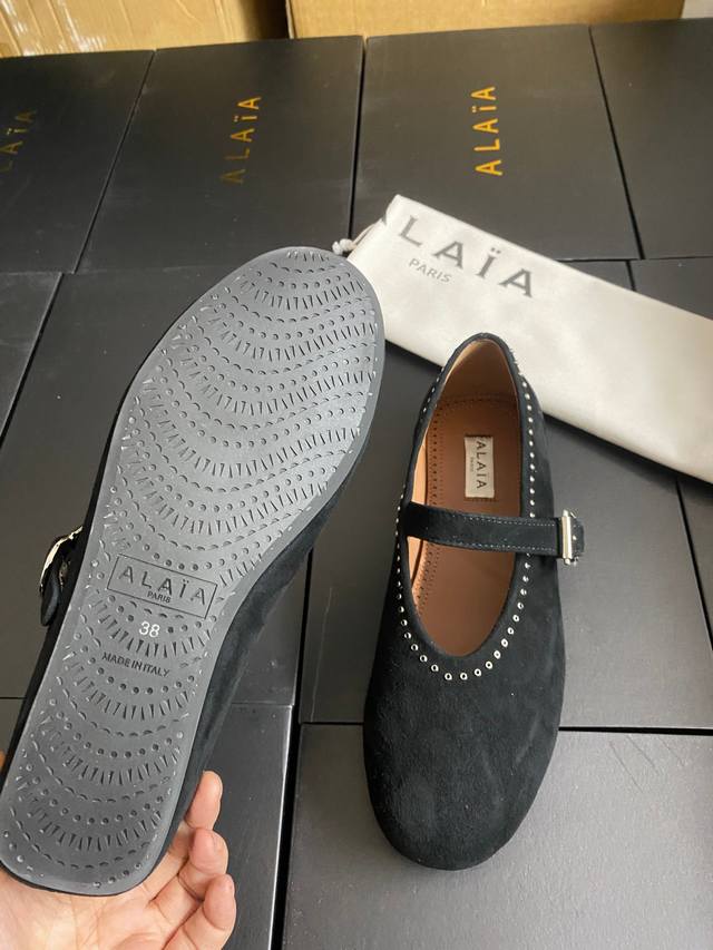 / Alaia 走秀款平底芭蕾舞平底单鞋! 甜酷芭蕾风,人气超高的一款芭蕾舞鞋,浪漫又迷人舒适百搭。 原版订制牛皮施华钻 面料, 羊皮内里,私模橡胶防滑大底, 码数