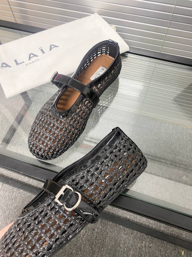 Alaia 走秀款平底芭蕾舞平底单鞋! 甜酷芭蕾风,人气超高的一款芭蕾舞鞋,浪漫又迷人舒适百搭。 原版订制牛皮施华钻 面料, 羊皮内里,私模橡胶防滑大底, 码数