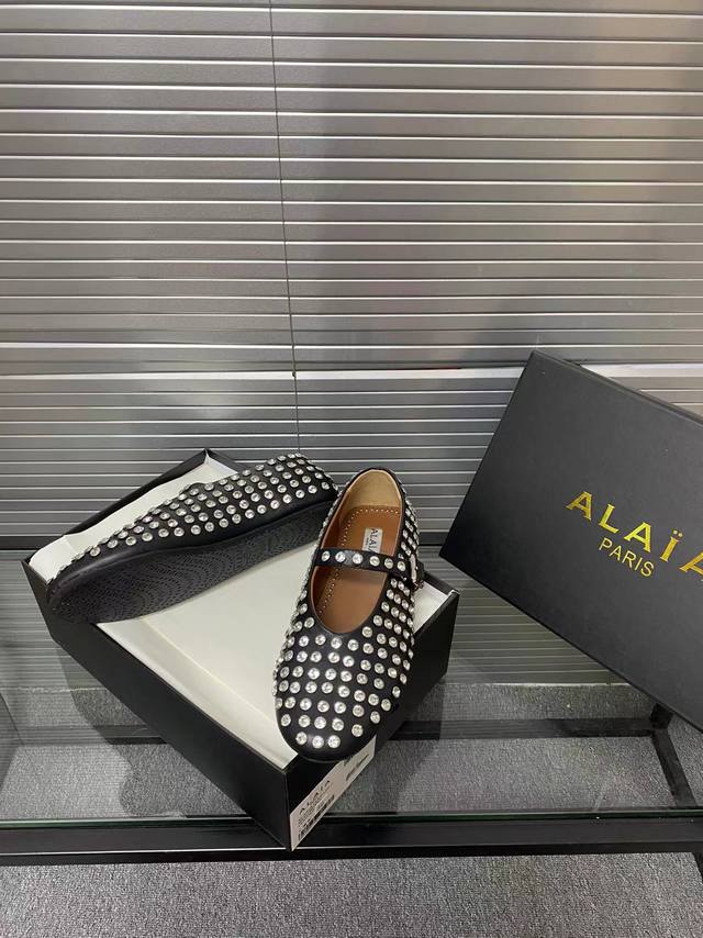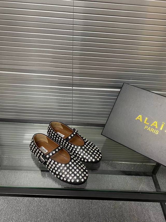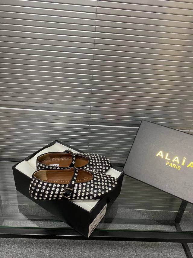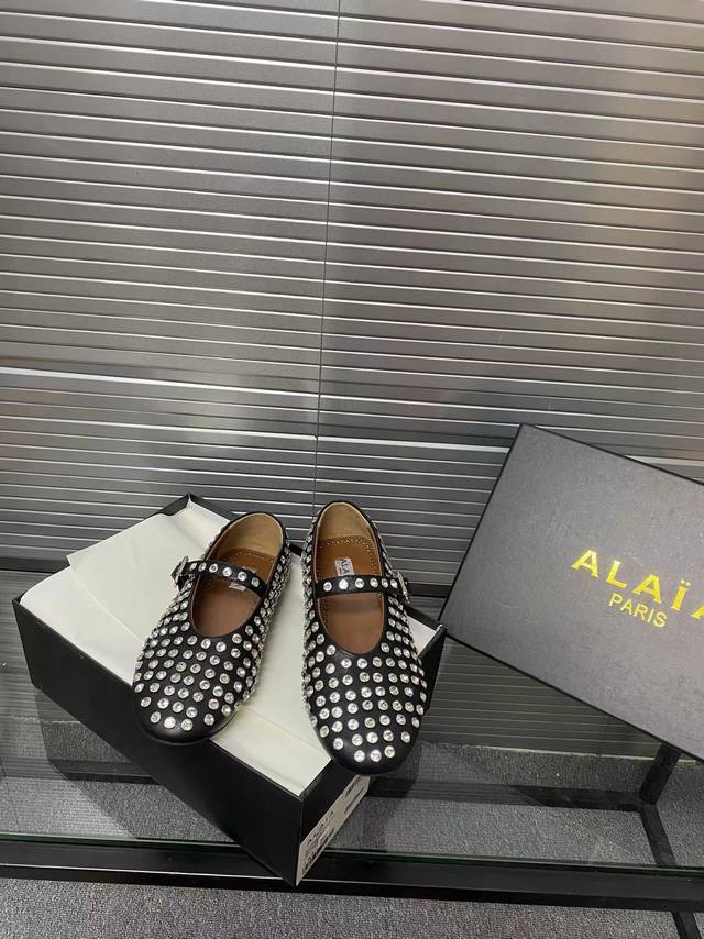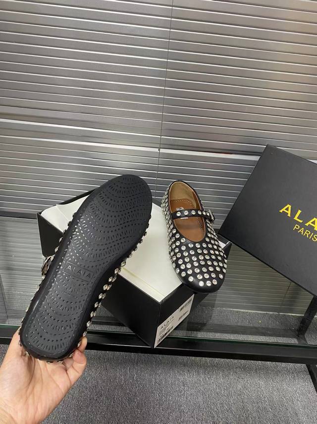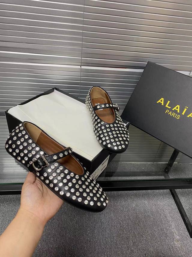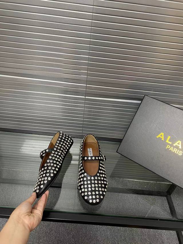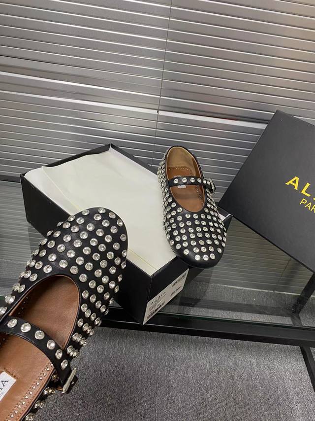 / Alaia 走秀款平底芭蕾舞平底单鞋! 甜酷芭蕾风,人气超高的一款芭蕾舞鞋,浪漫又迷人舒适百搭。 原版订制牛皮施华钻 面料, 羊皮内里,私模橡胶防滑大底, 码数