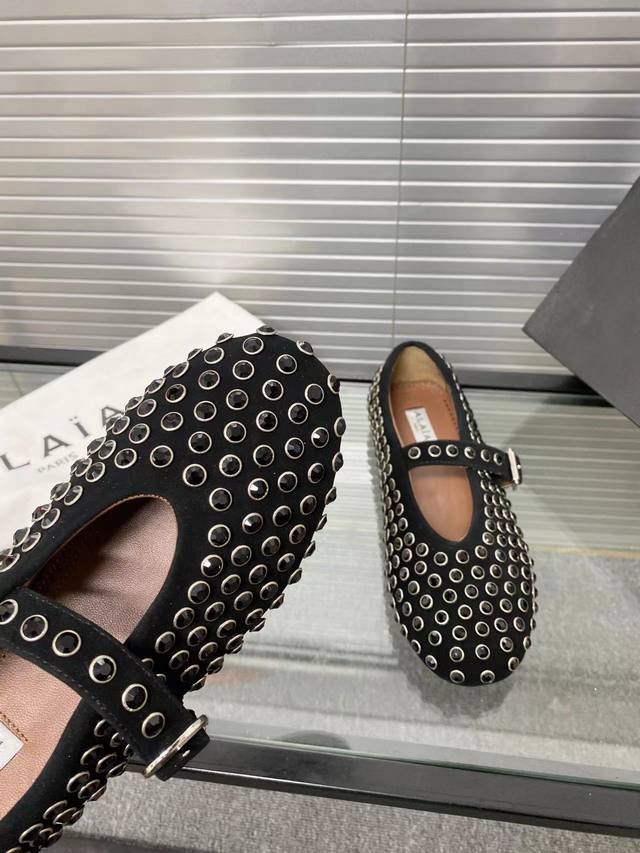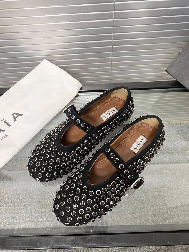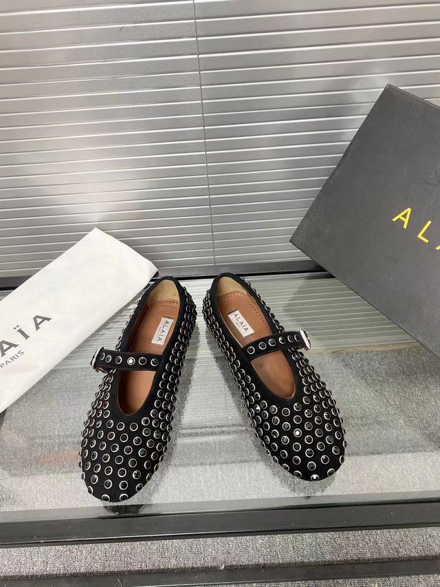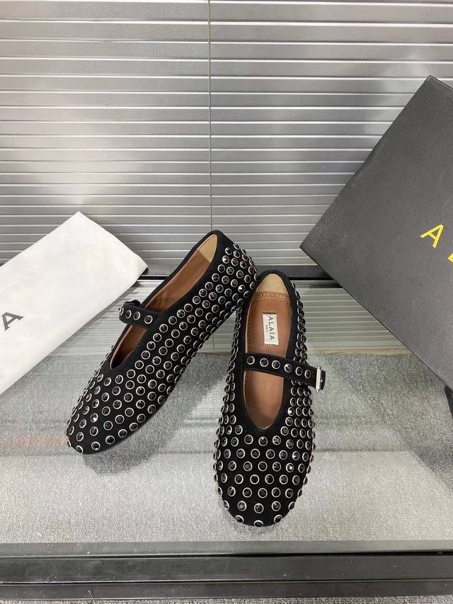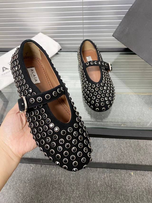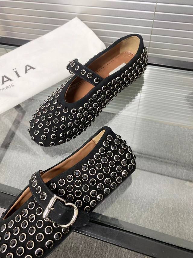 / Alaia 走秀款平底芭蕾舞平底单鞋! 甜酷芭蕾风,人气超高的一款芭蕾舞鞋,浪漫又迷人舒适百搭。 原版订制牛皮施华钻 面料, 羊皮内里,私模橡胶防滑大底, 码数