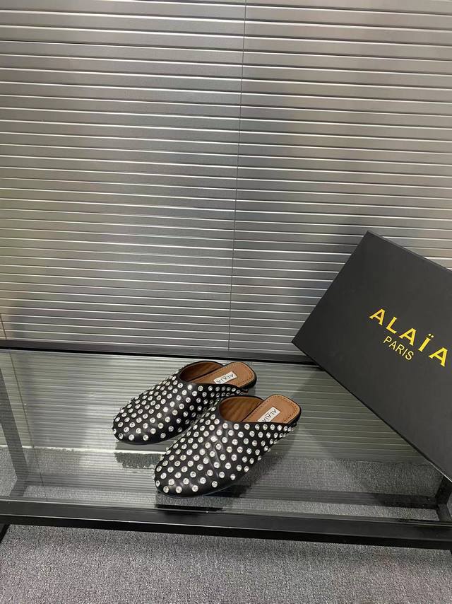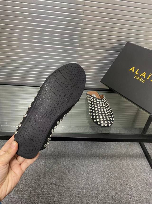 Alaia 走秀款平底芭蕾舞平底单鞋! 甜酷芭蕾风,人气超高的一款芭蕾舞鞋,浪漫又迷人舒适百搭。 原版订制牛皮施华钻 面料, 羊皮内里,私模橡胶防滑大底, 码数