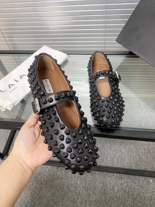 / Alaia 走秀款平底芭蕾舞平底单鞋! 甜酷芭蕾风,人气超高的一款芭蕾舞鞋,浪漫又迷人舒适百搭。 原版订制牛皮施华钻 面料, 羊皮内里,私模橡胶防滑大底, 码数