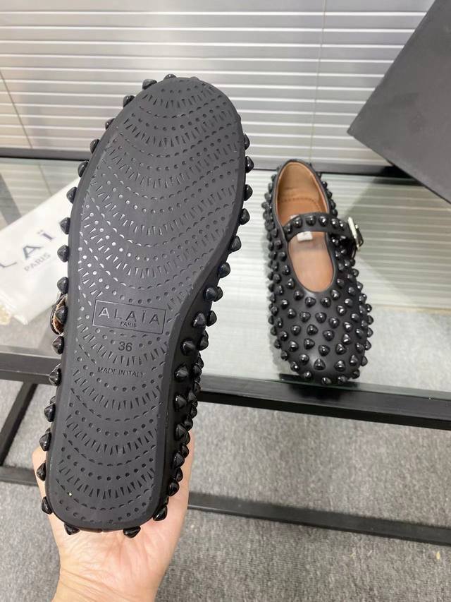 Alaia 走秀款平底芭蕾舞平底单鞋! 甜酷芭蕾风,人气超高的一款芭蕾舞鞋,浪漫又迷人舒适百搭。 原版订制牛皮施华钻 面料, 羊皮内里,私模橡胶防滑大底, 码数