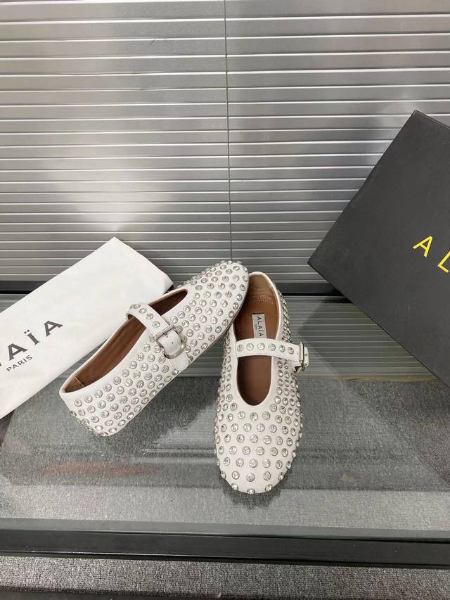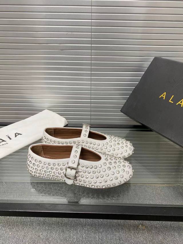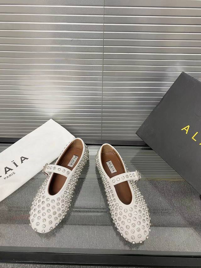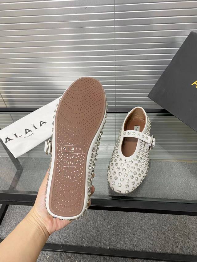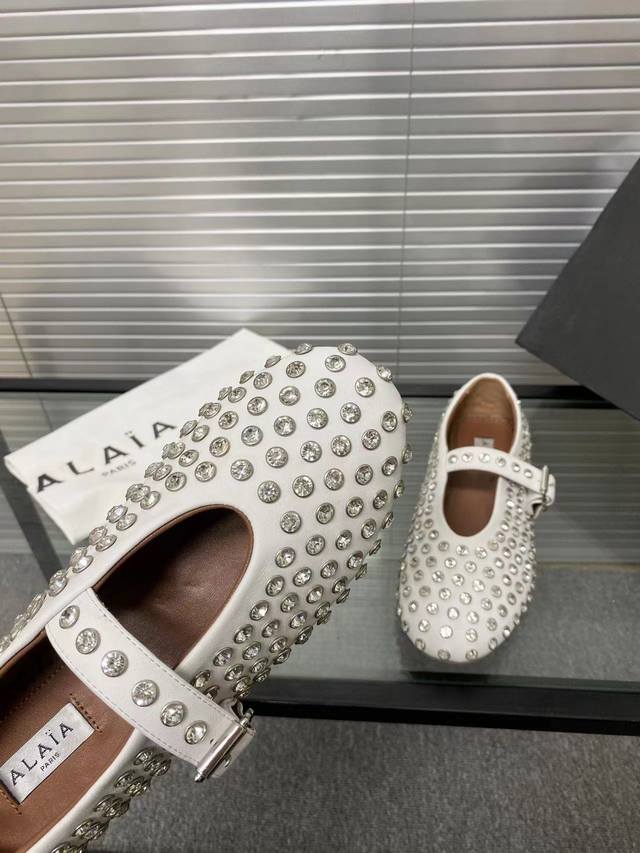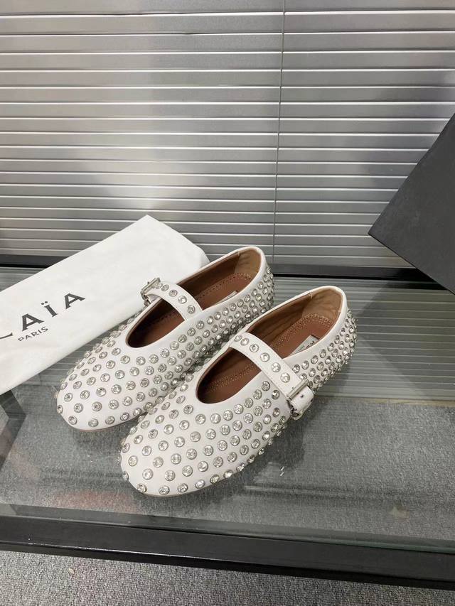 Alaia 走秀款平底芭蕾舞平底单鞋! 甜酷芭蕾风,人气超高的一款芭蕾舞鞋,浪漫又迷人舒适百搭。 原版订制牛皮施华钻 面料, 羊皮内里,私模橡胶防滑大底, 码数