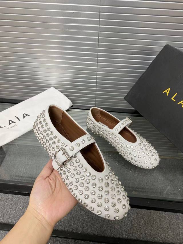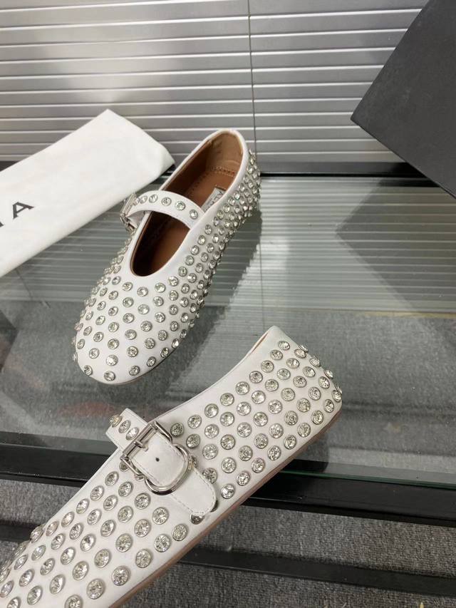 / Alaia 走秀款平底芭蕾舞平底单鞋! 甜酷芭蕾风,人气超高的一款芭蕾舞鞋,浪漫又迷人舒适百搭。 原版订制牛皮施华钻 面料, 羊皮内里,私模橡胶防滑大底, 码数