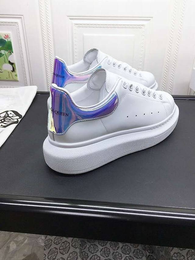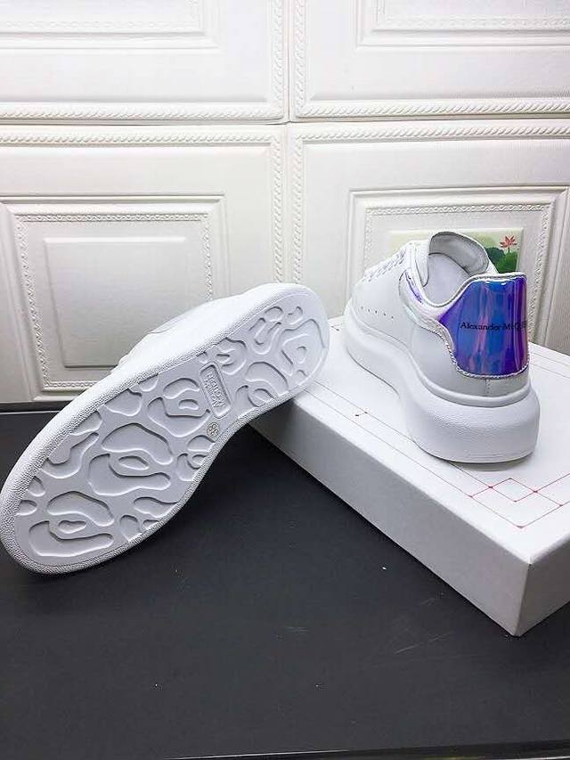 Alexander Mcqueen 麦昆 情侣款 年新款配色,官网同步发售!想不出有任何理由不收它!面料采用进口丝绸亚光原版牛皮 最新材料 水染羊皮内里,羊皮垫脚 原版大底 回弹度极佳 耐磨又舒适 鞋底厚4.5Cm 女款34-40, 男38-45,女款p ,男款p DDD